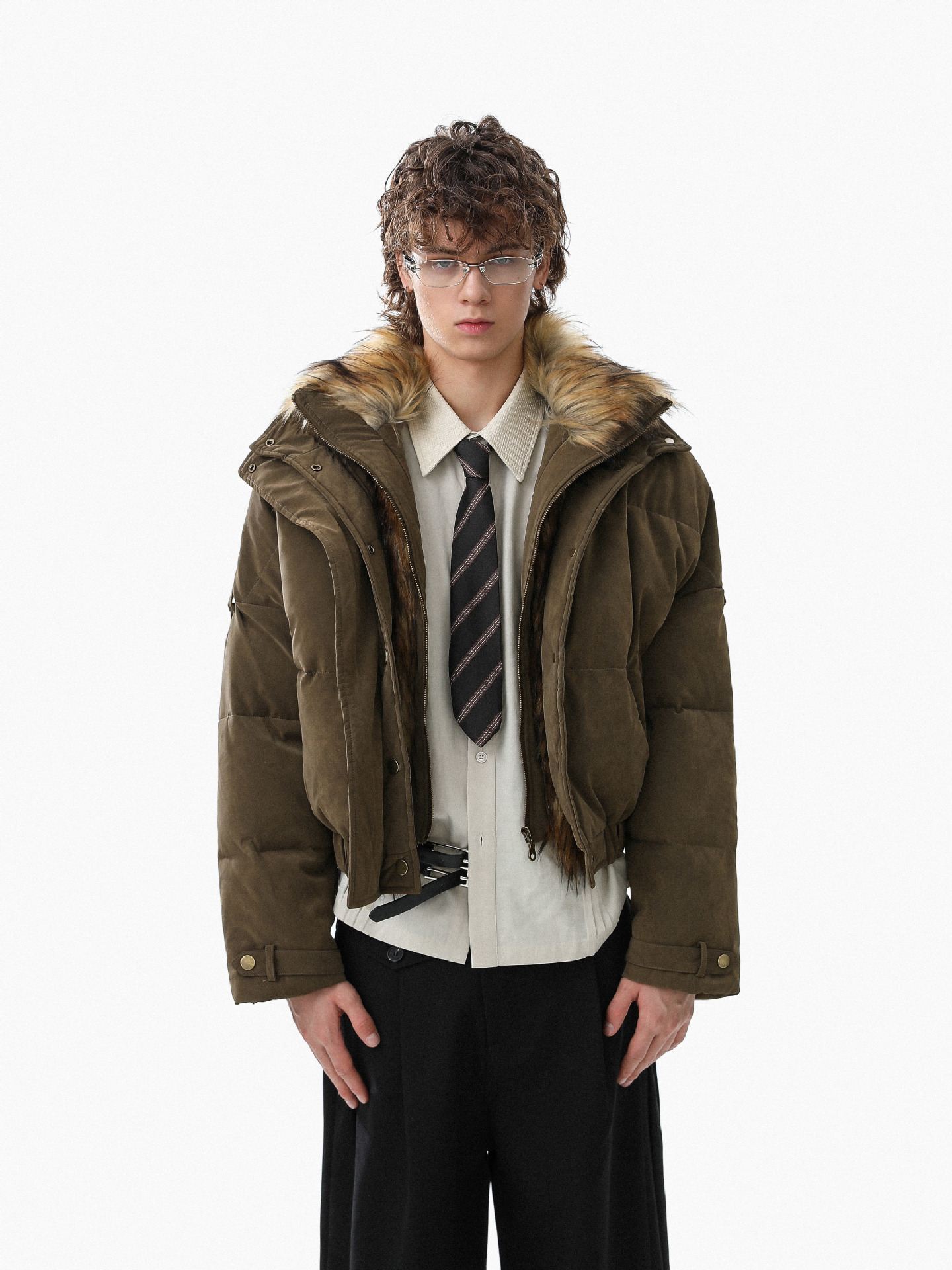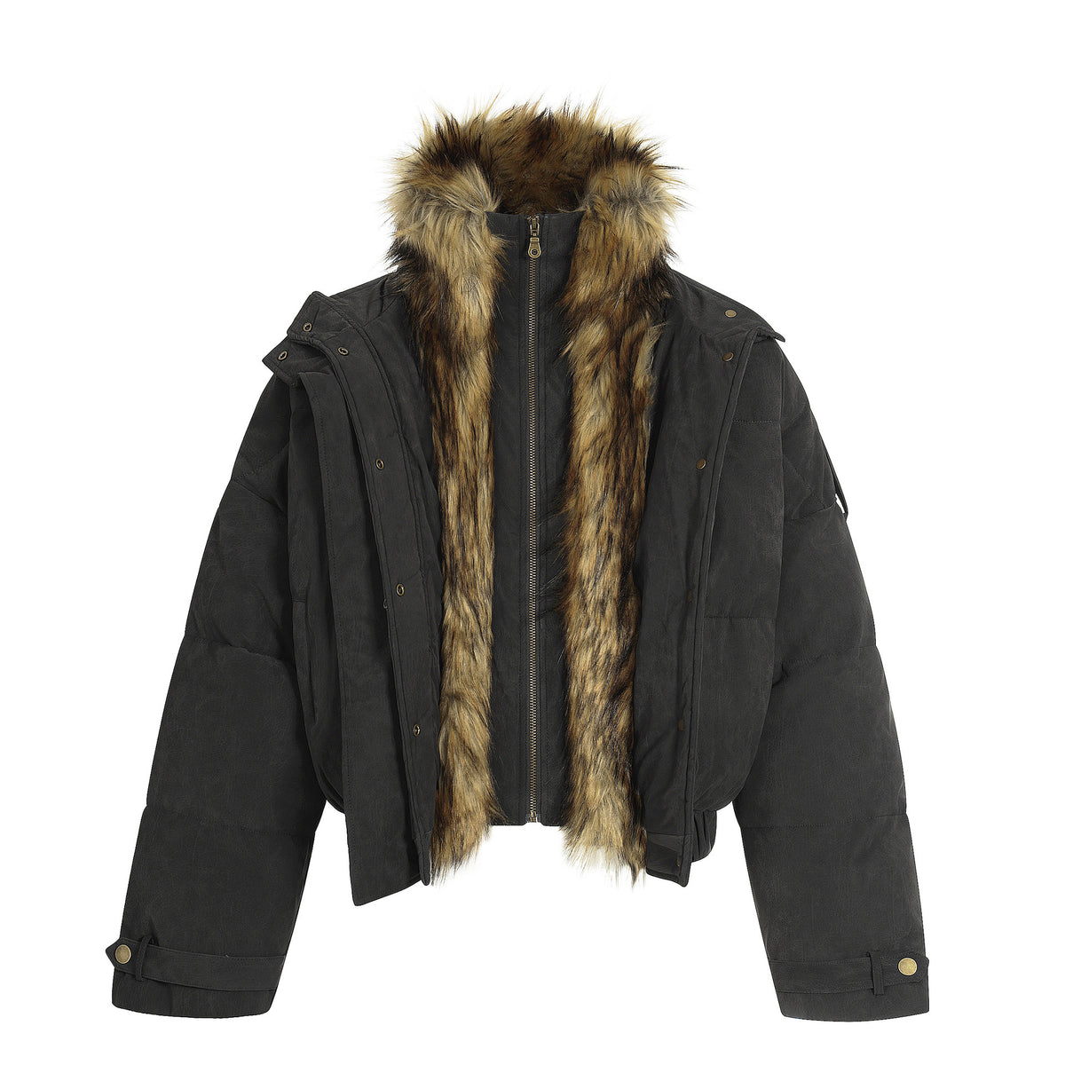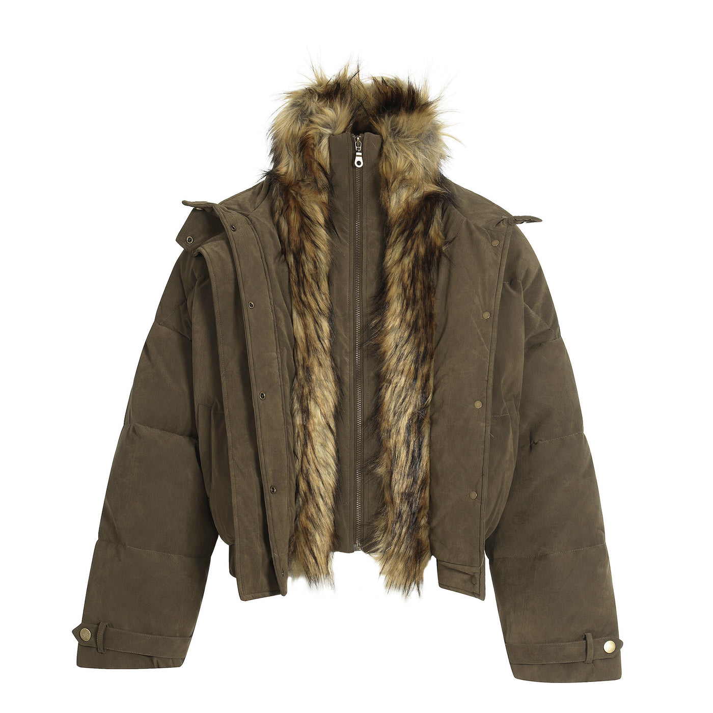 Cotton coat fur collar jacket fake two pieces - Brown / S