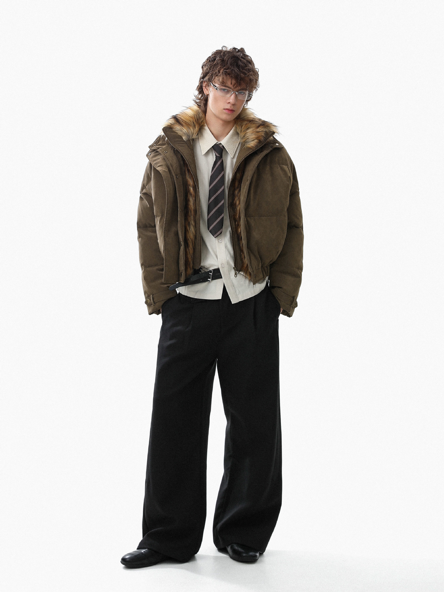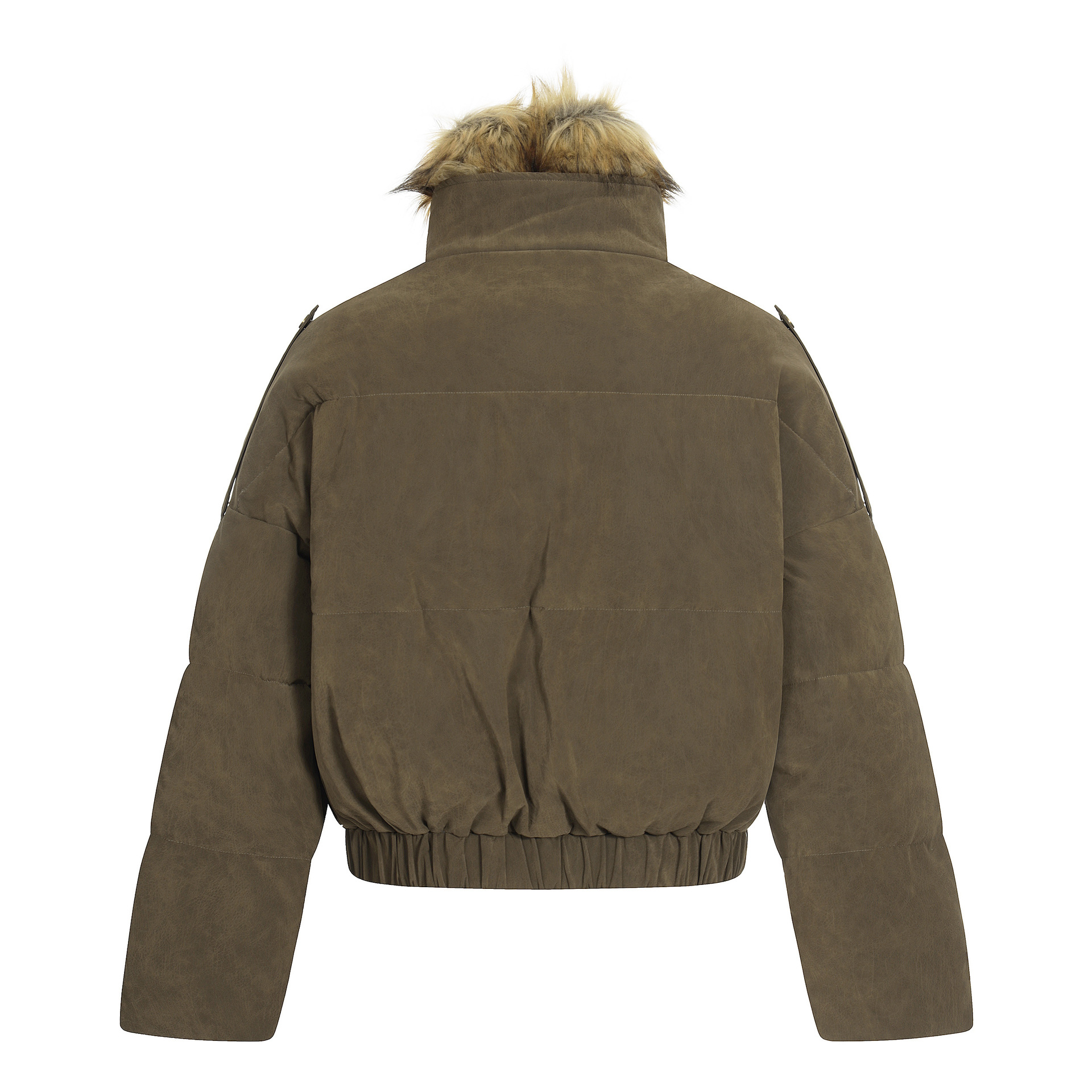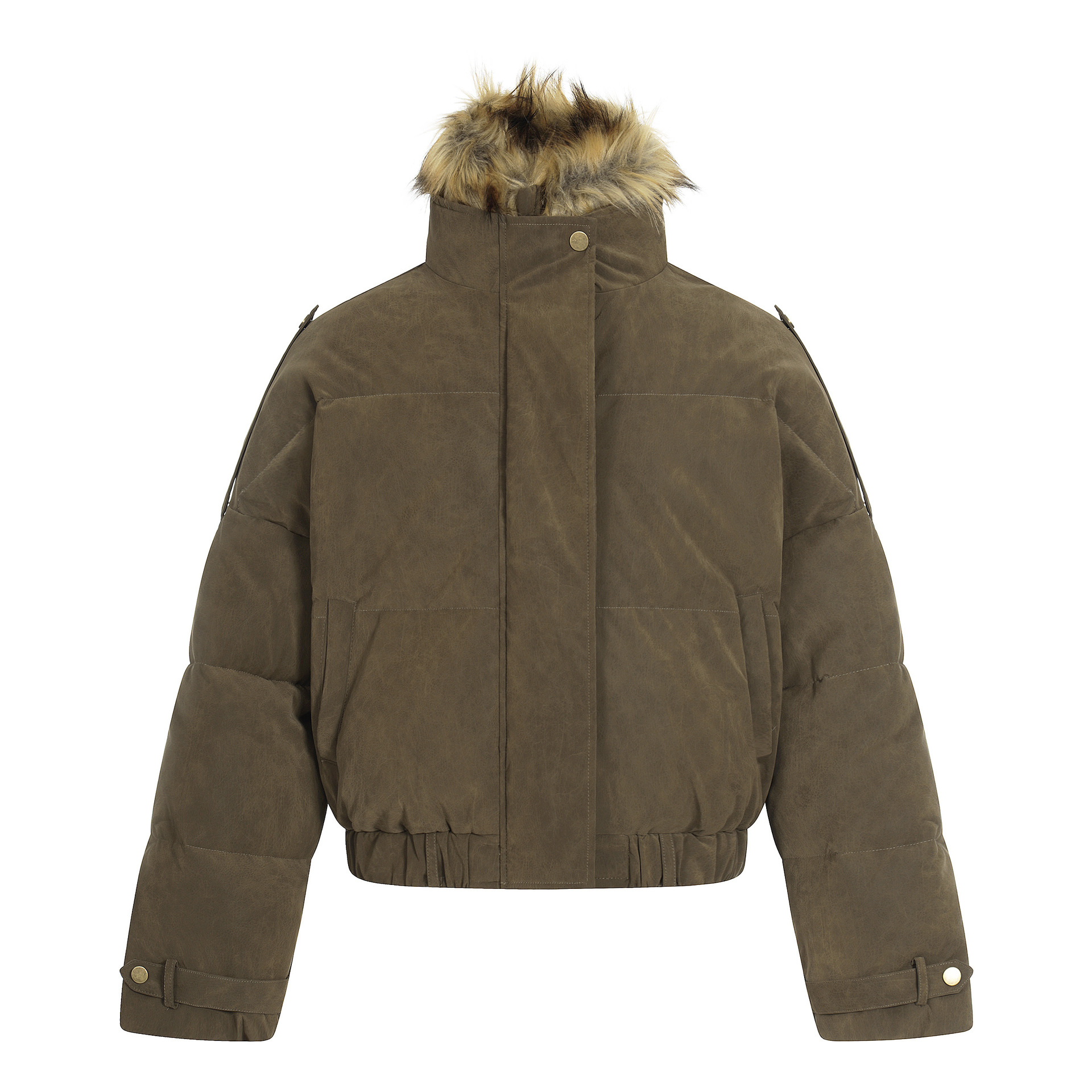Cotton coat fur collar jacket fake two pieces - Brown / S