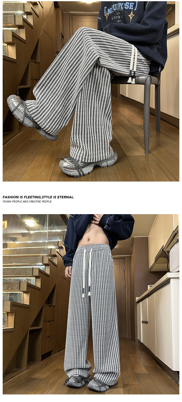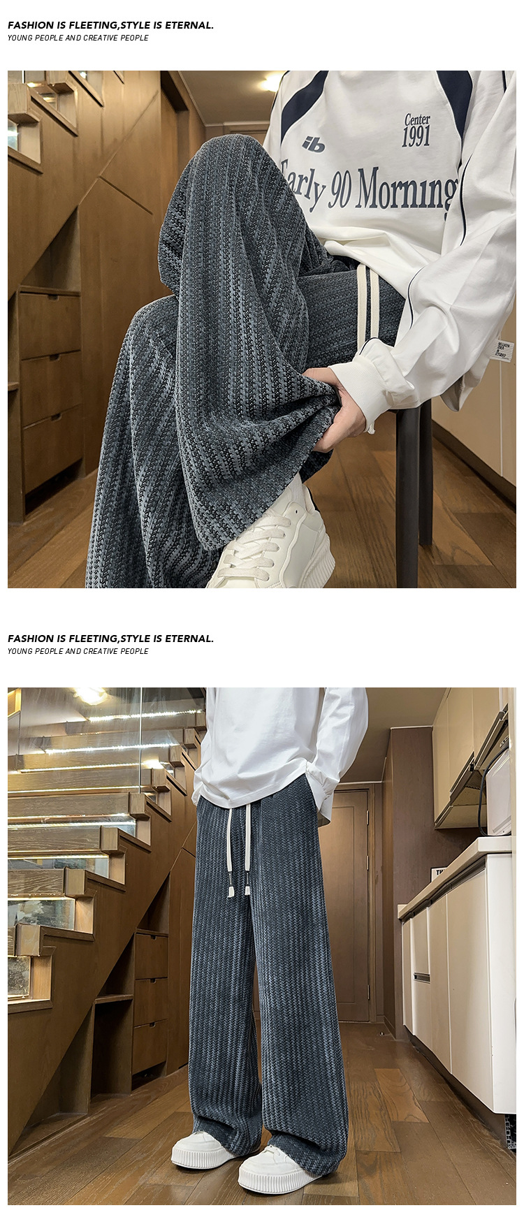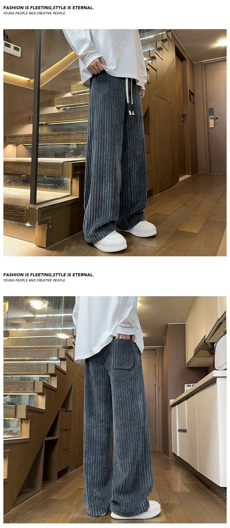 Textured jacquard pants men's autumn winter trendy street style straight loose long pants with drape heavyweight wide-leg casual pants for men - White / M