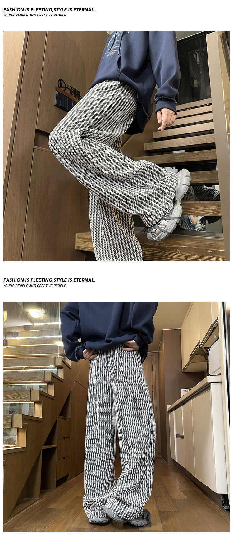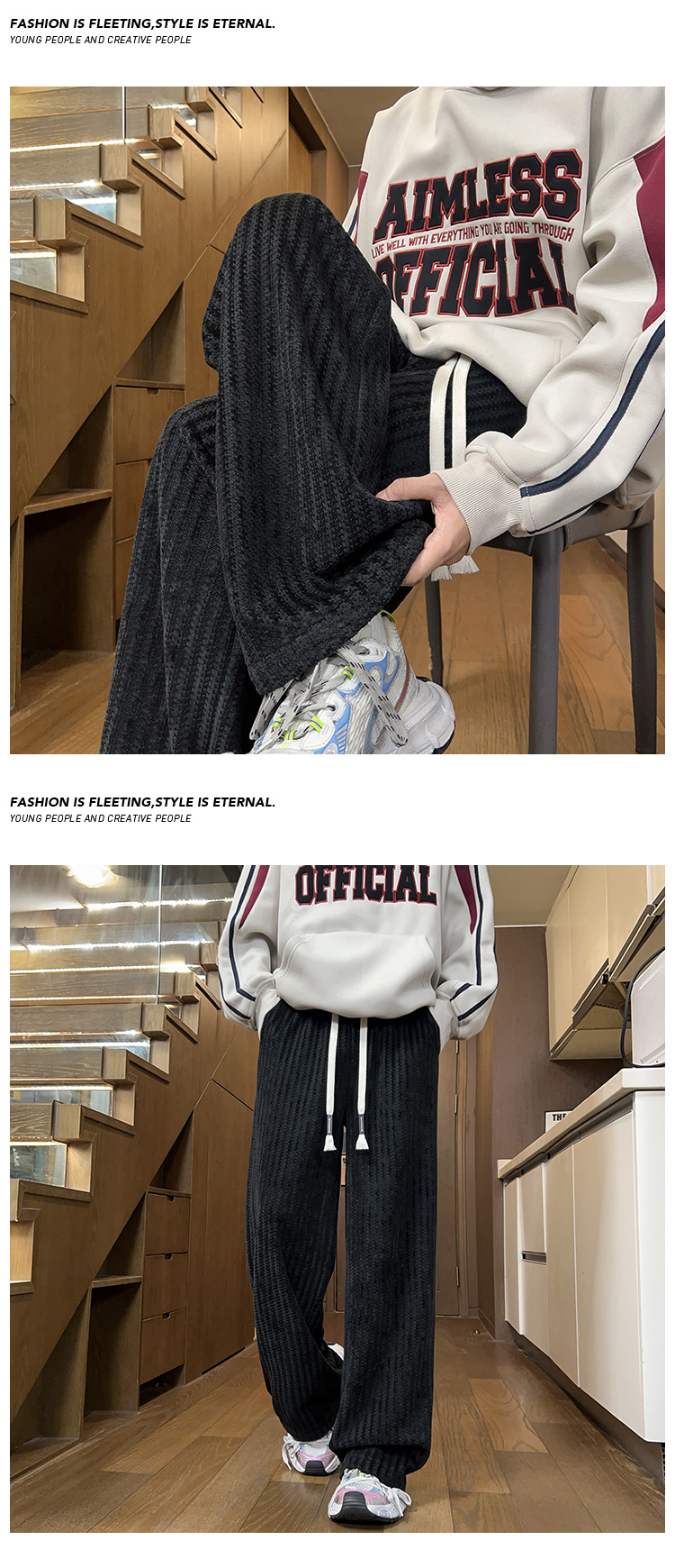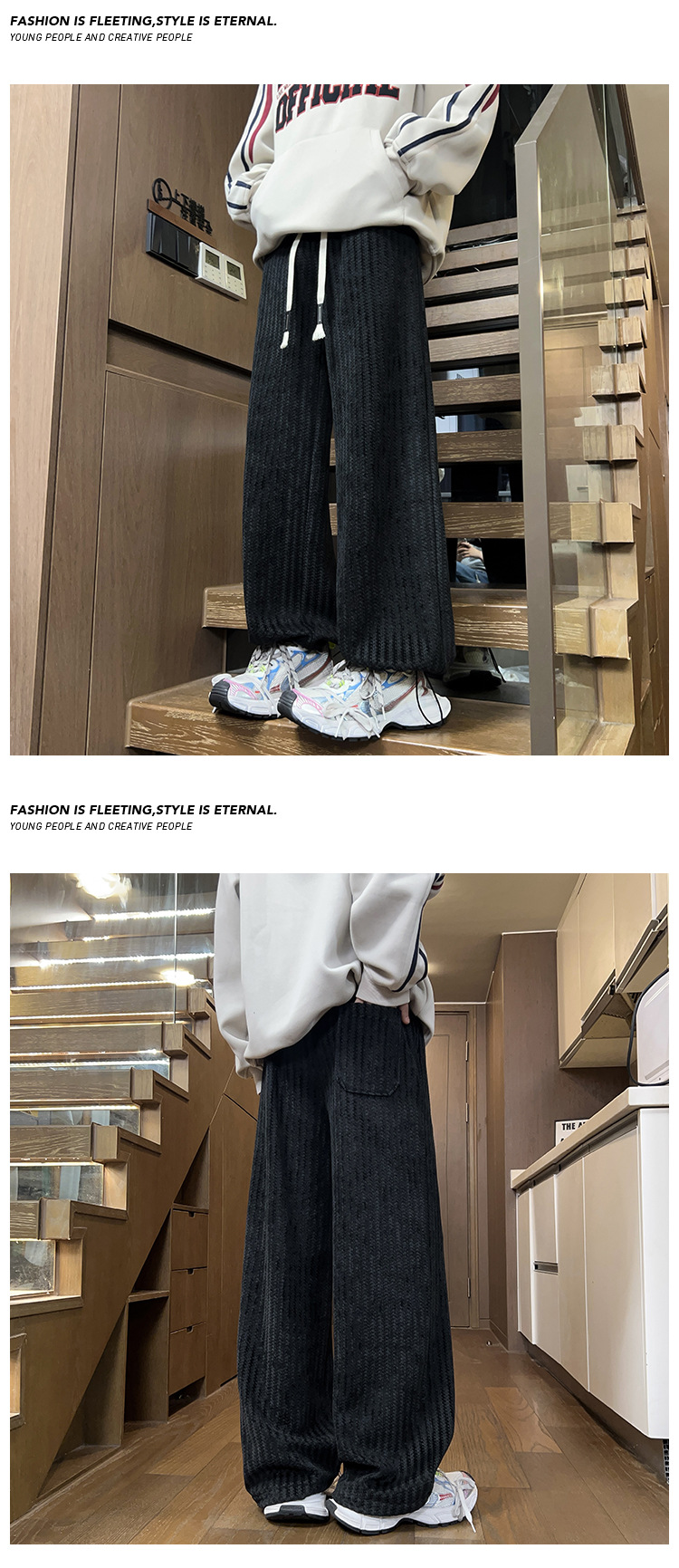 Textured jacquard pants men's autumn winter trendy street style straight loose long pants with drape heavyweight wide-leg casual pants for men - White / M