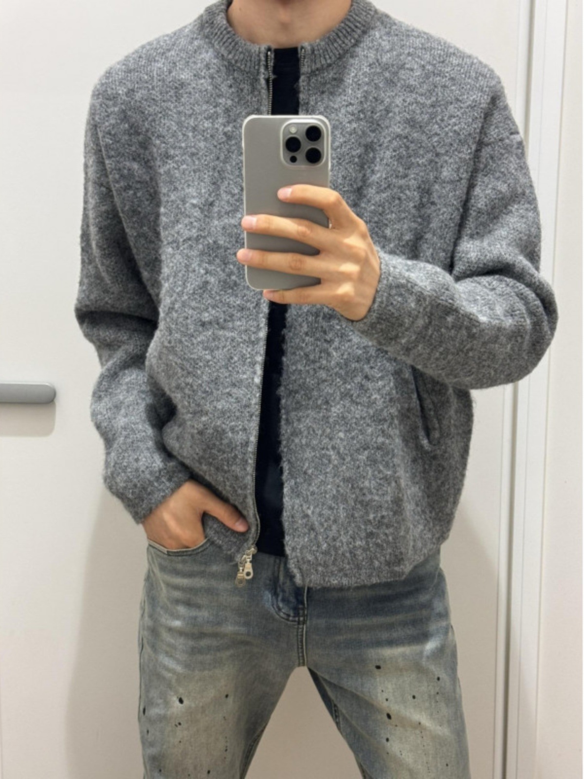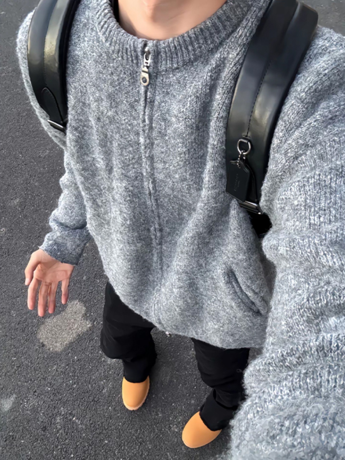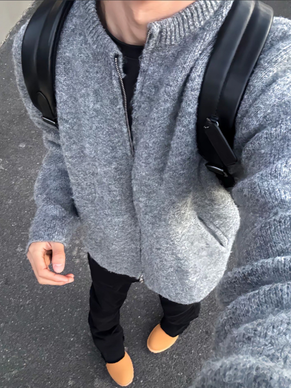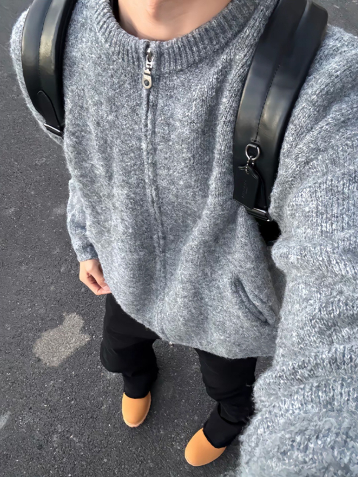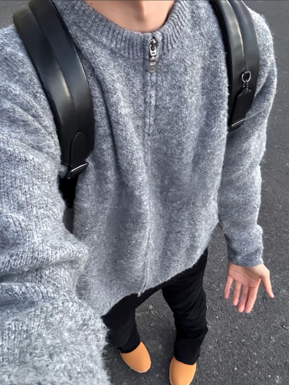 Winter Lazy Style Knitwear High-End Clean Fit Sweater Cardigan Leaky Mohair Knit Open Front Men's Sweater - Gray / M