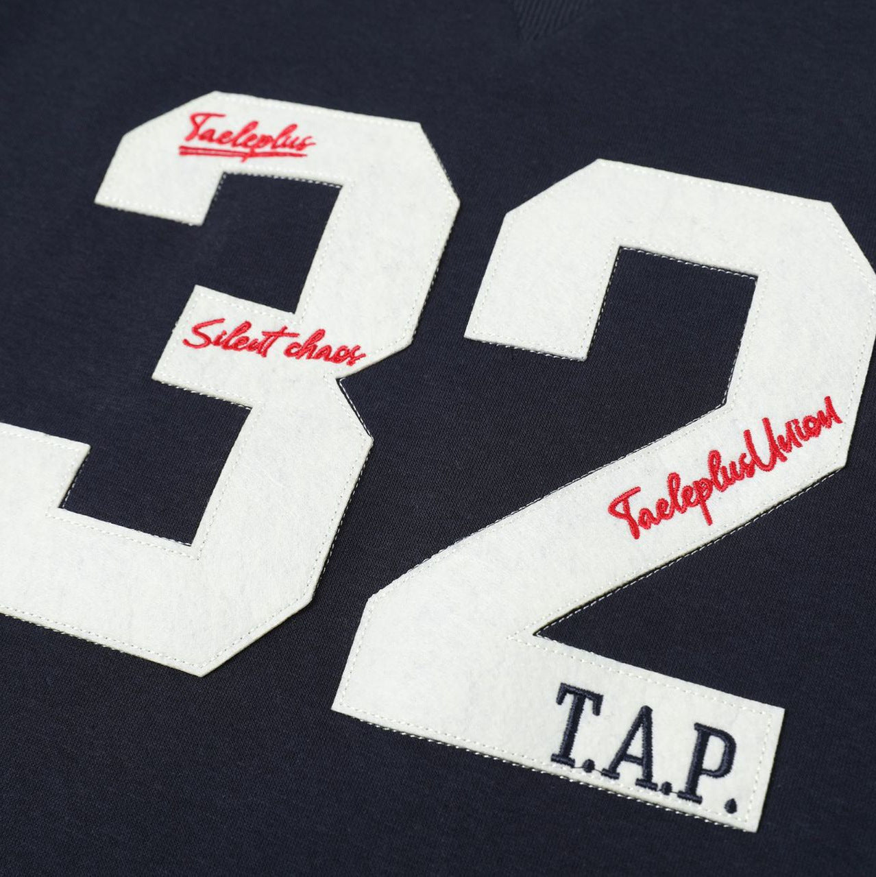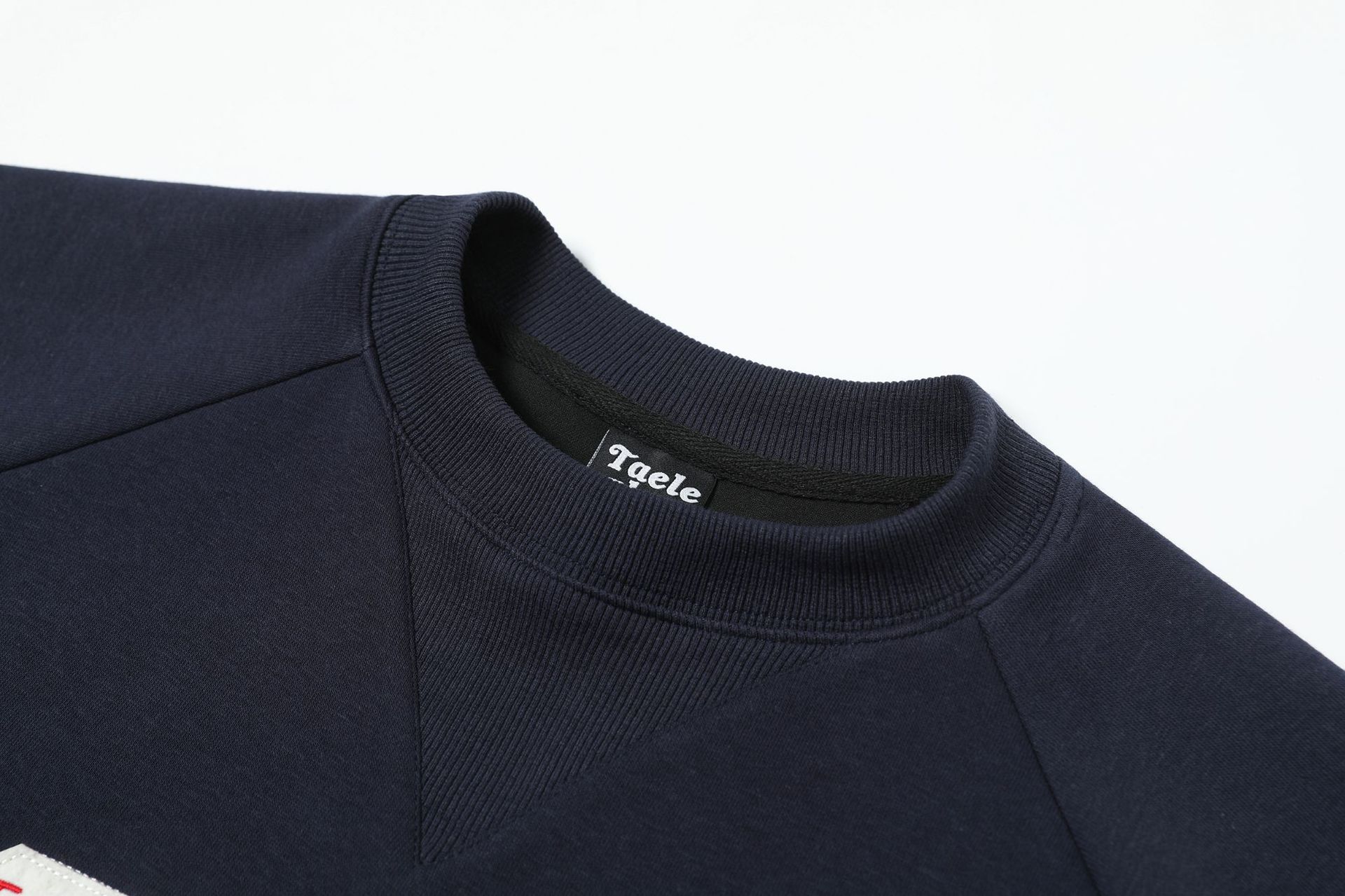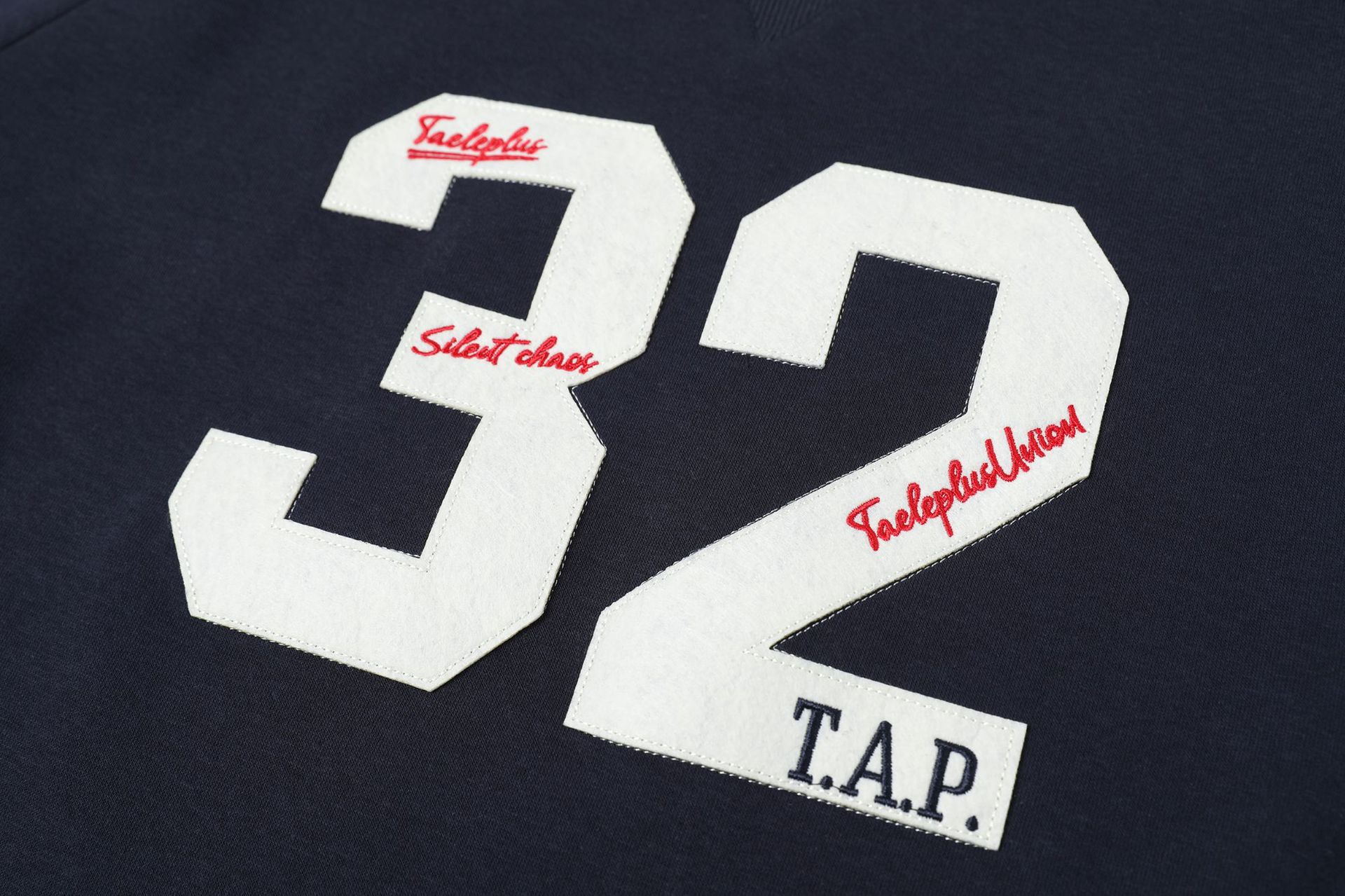 Embroidered round neck hoodie with adhesive fabric