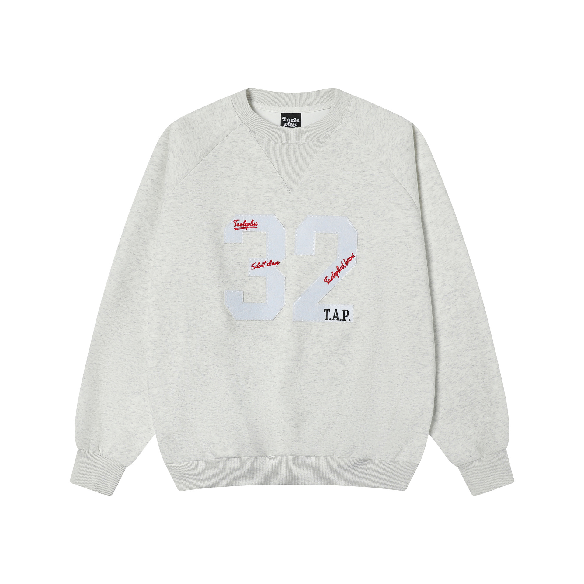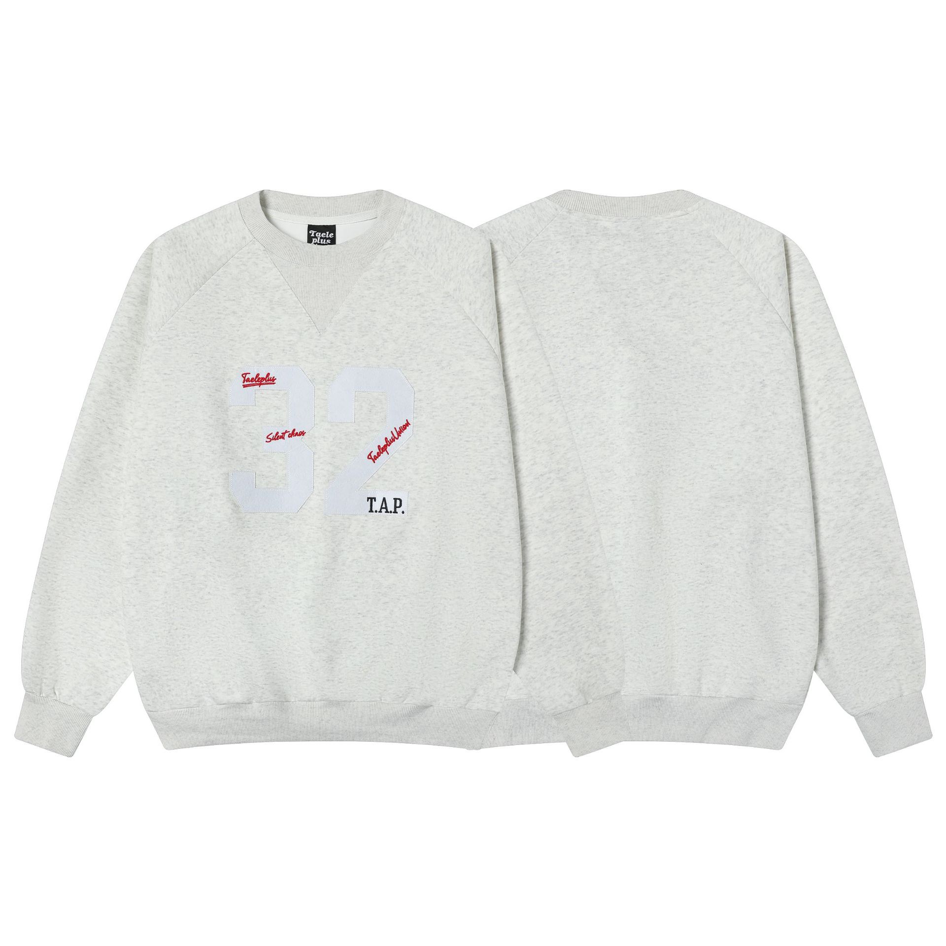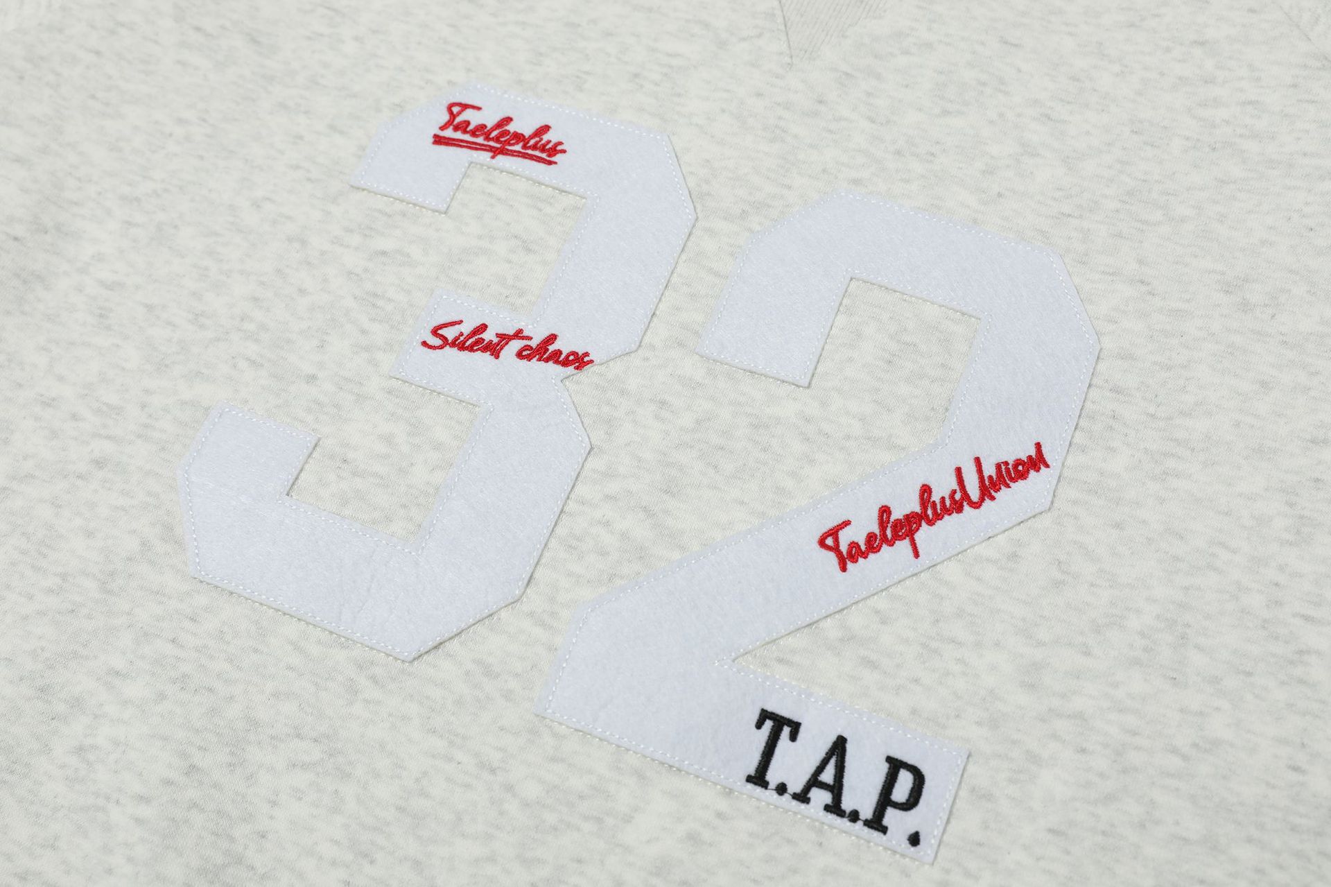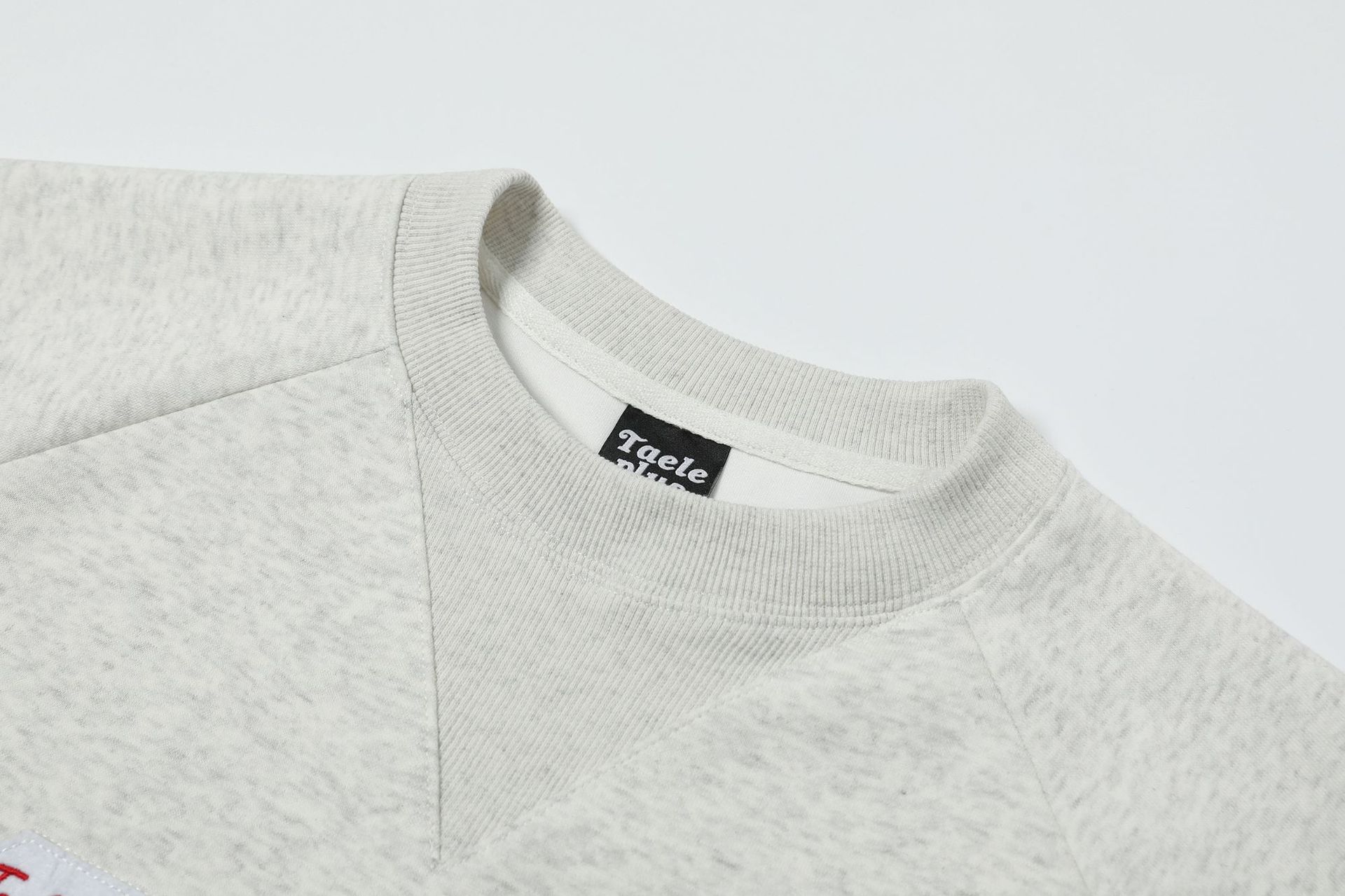 Embroidered round neck hoodie with adhesive fabric - Linen Gray / M