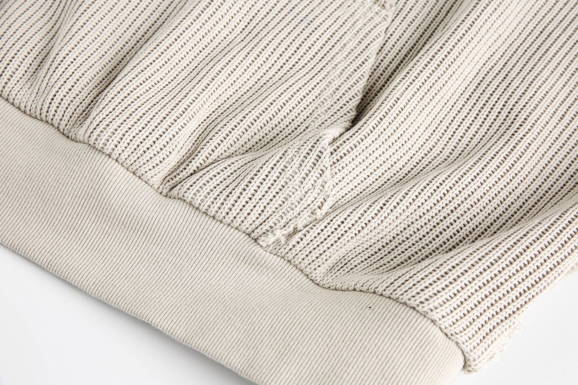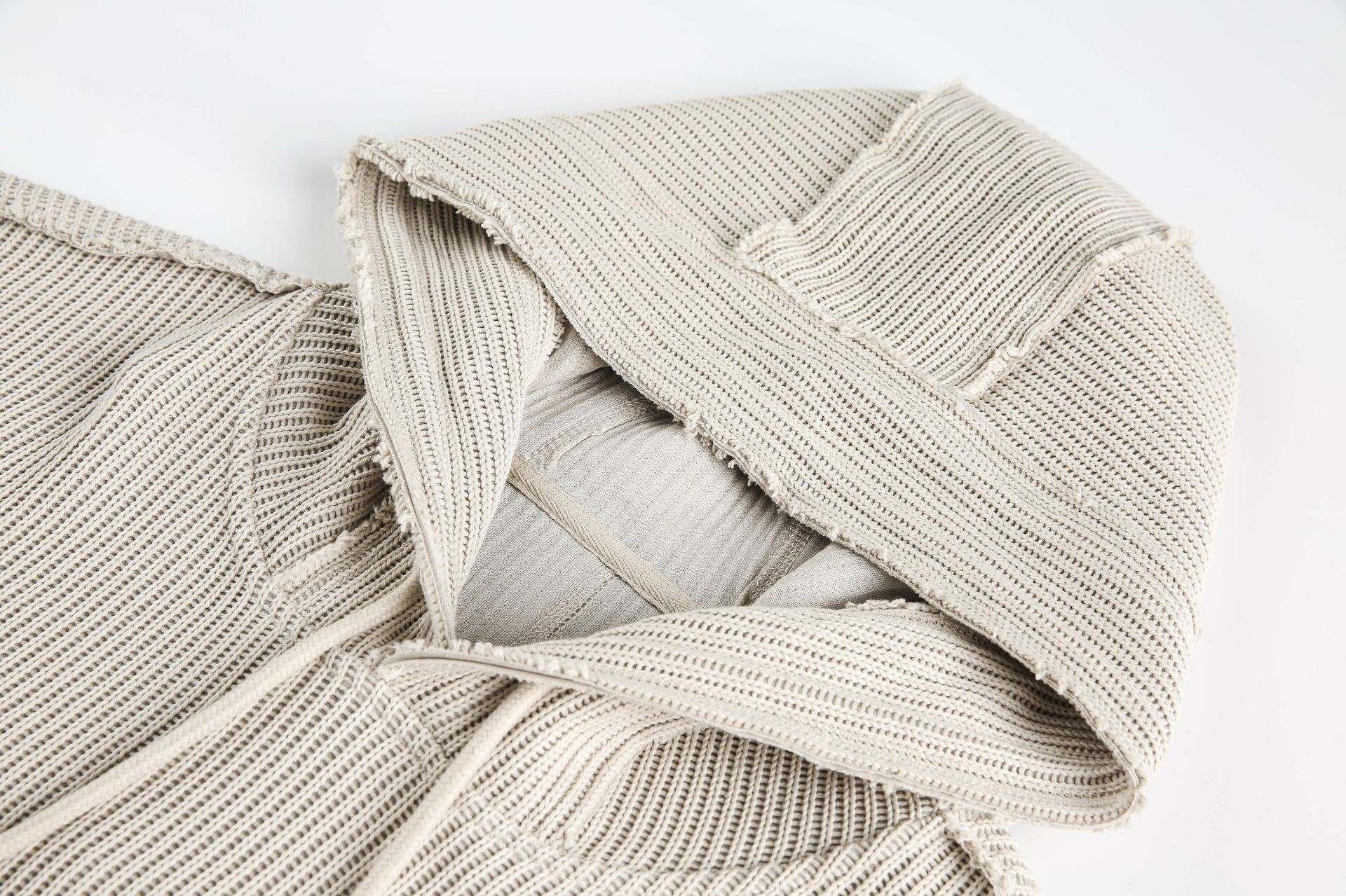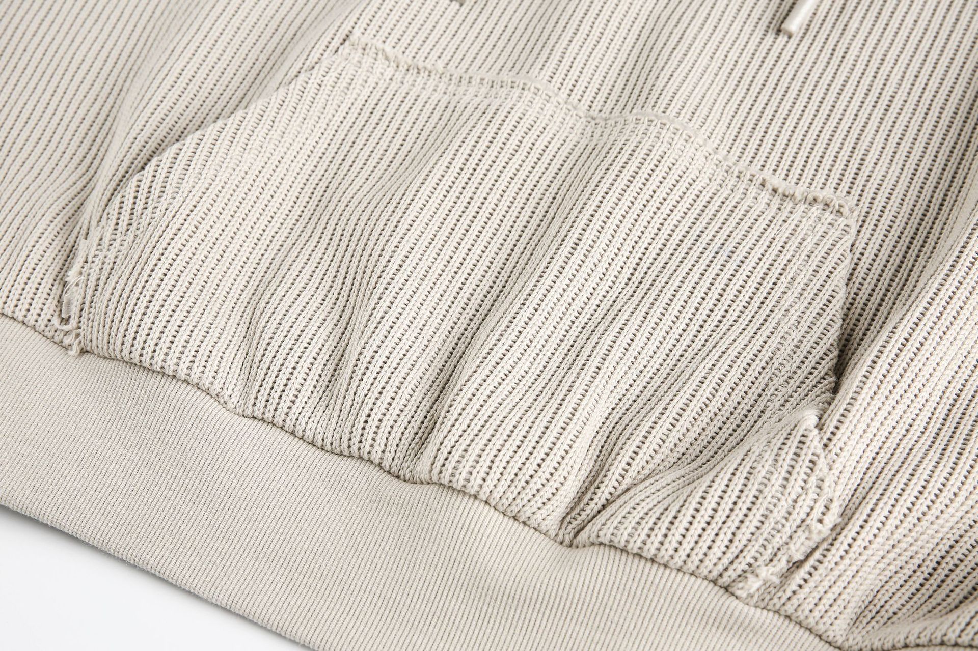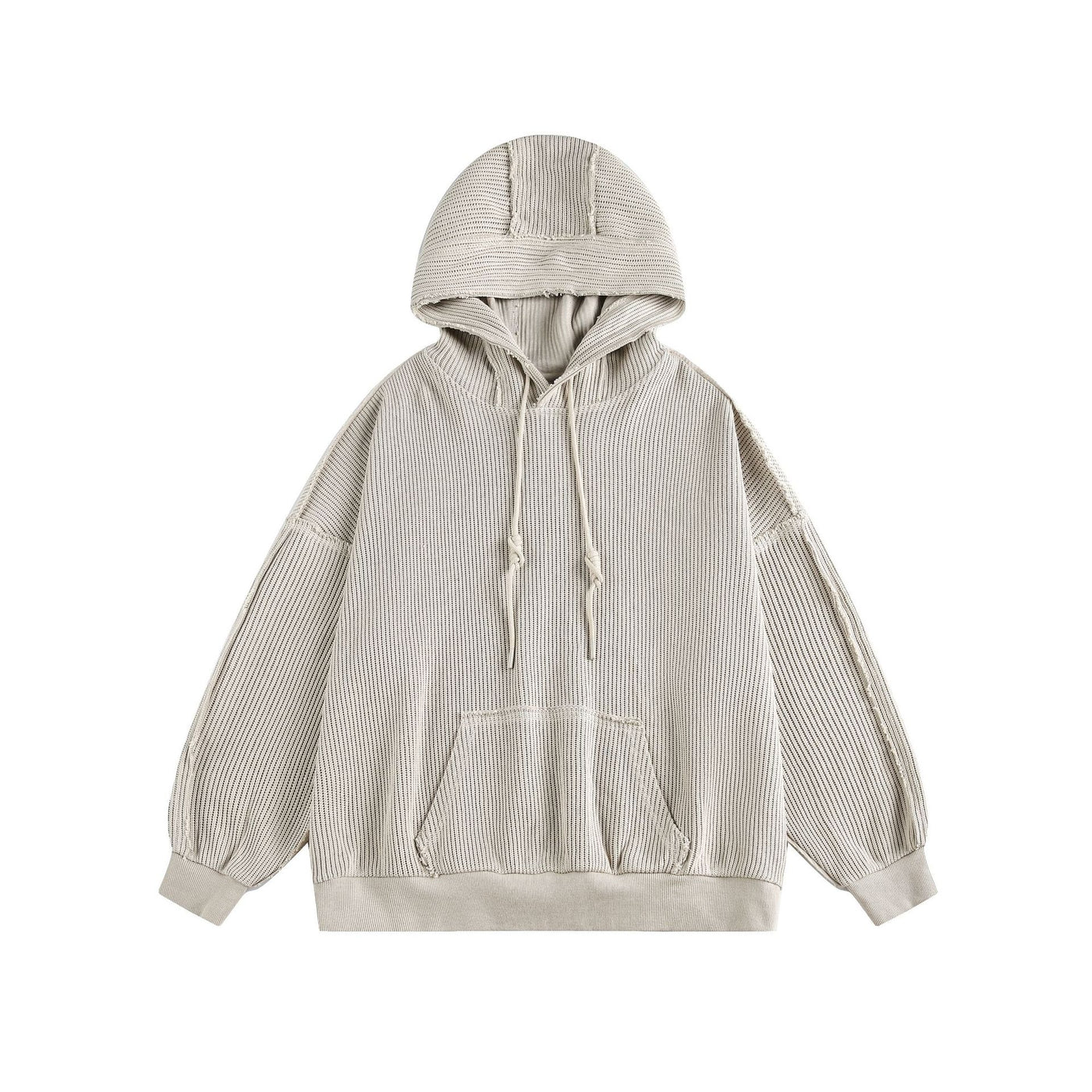Hairy edge distressed hooded sweatshirt for men - Beige / S