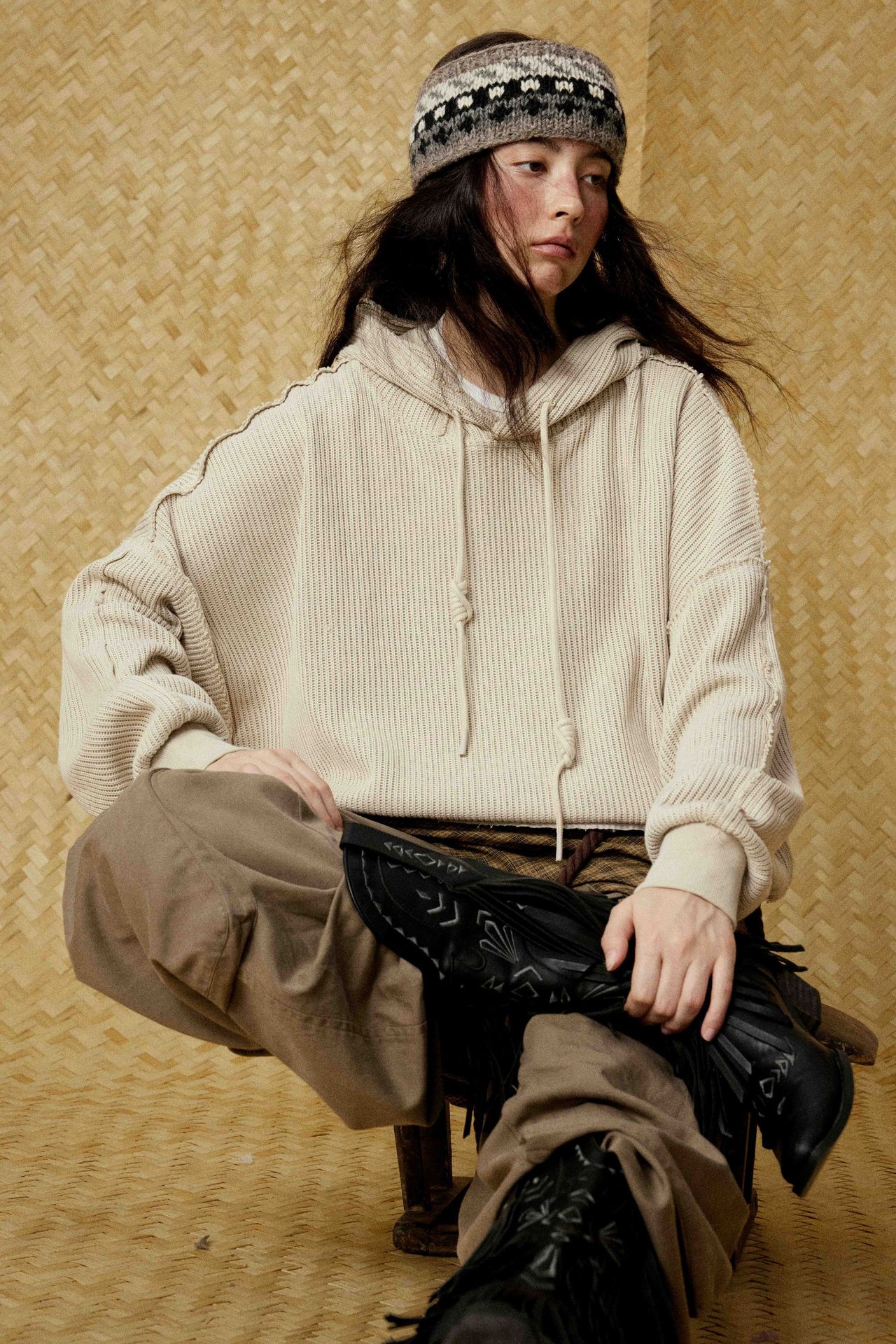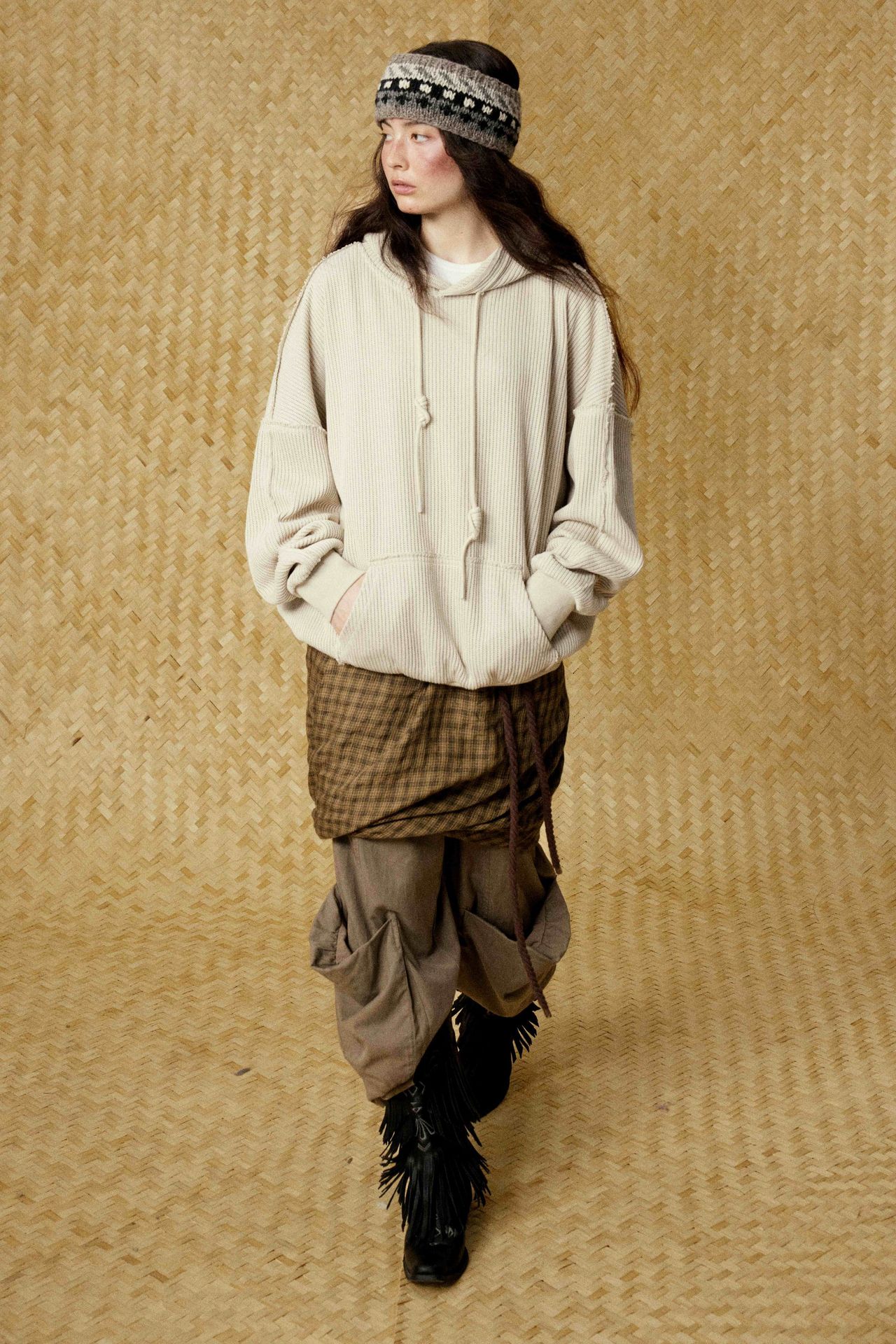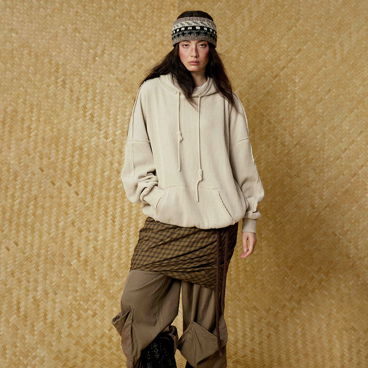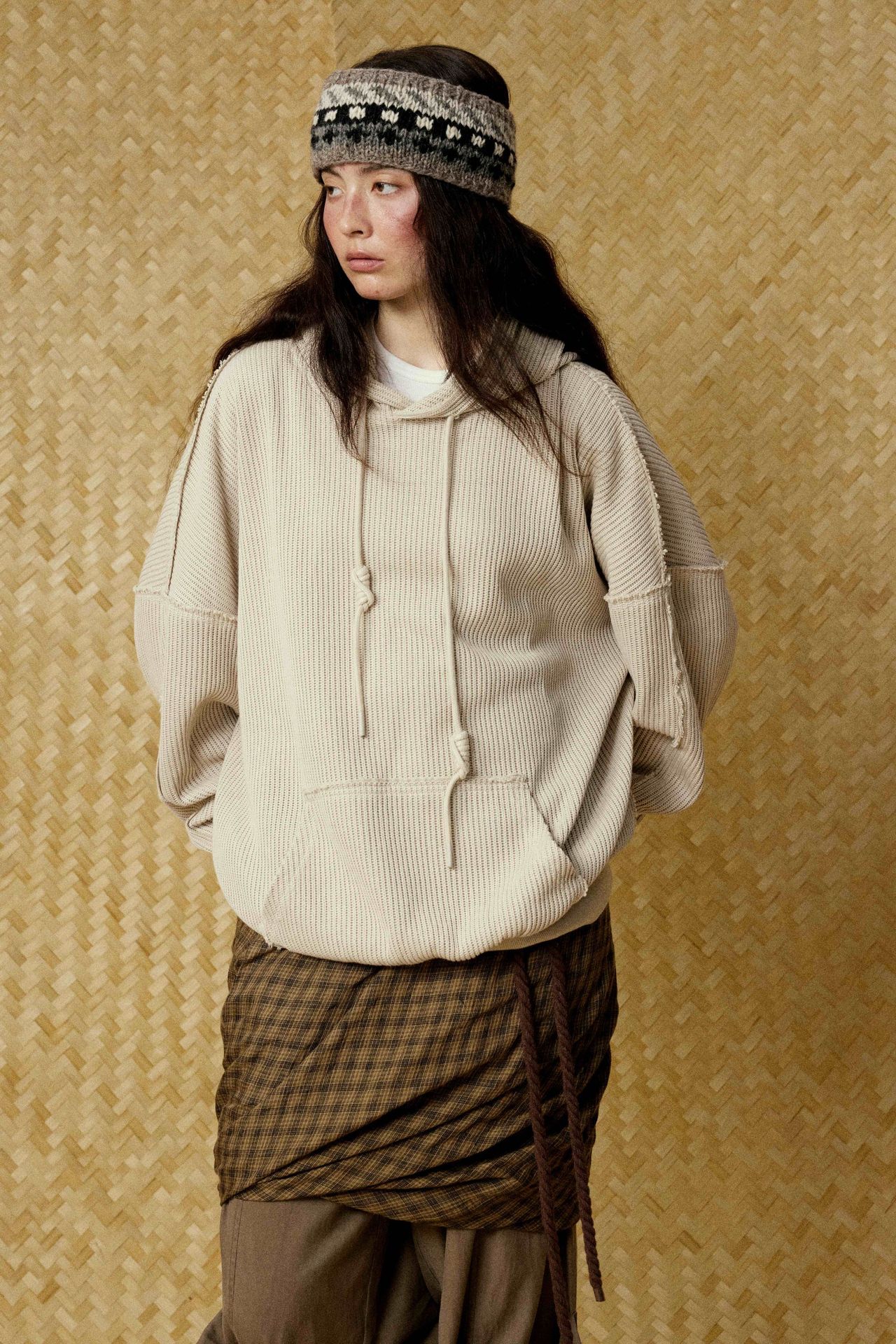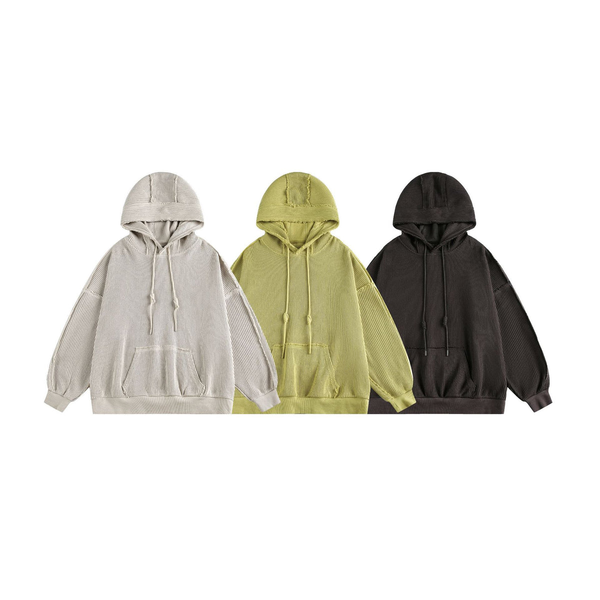 Hairy edge distressed hooded sweatshirt for men - Beige / S