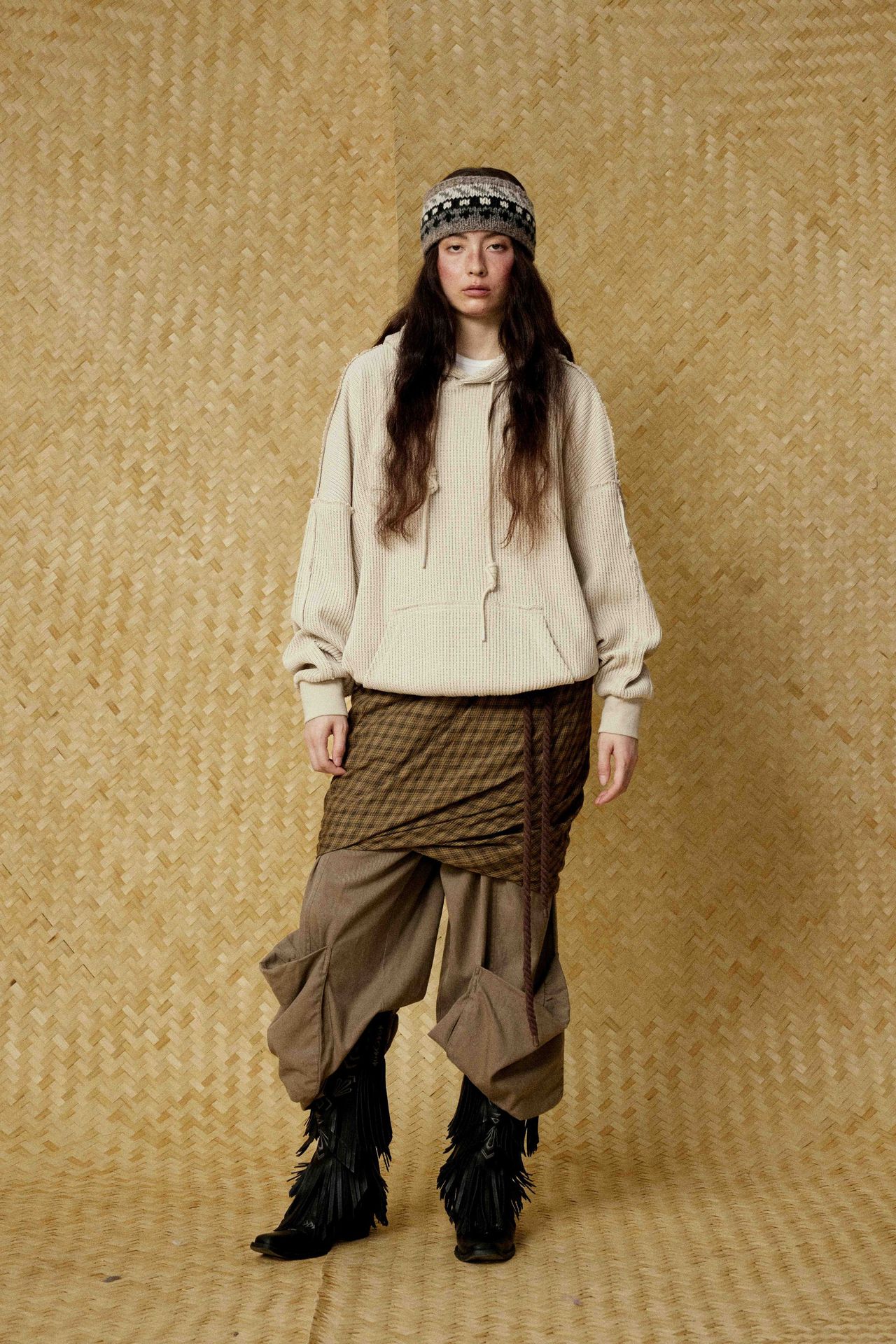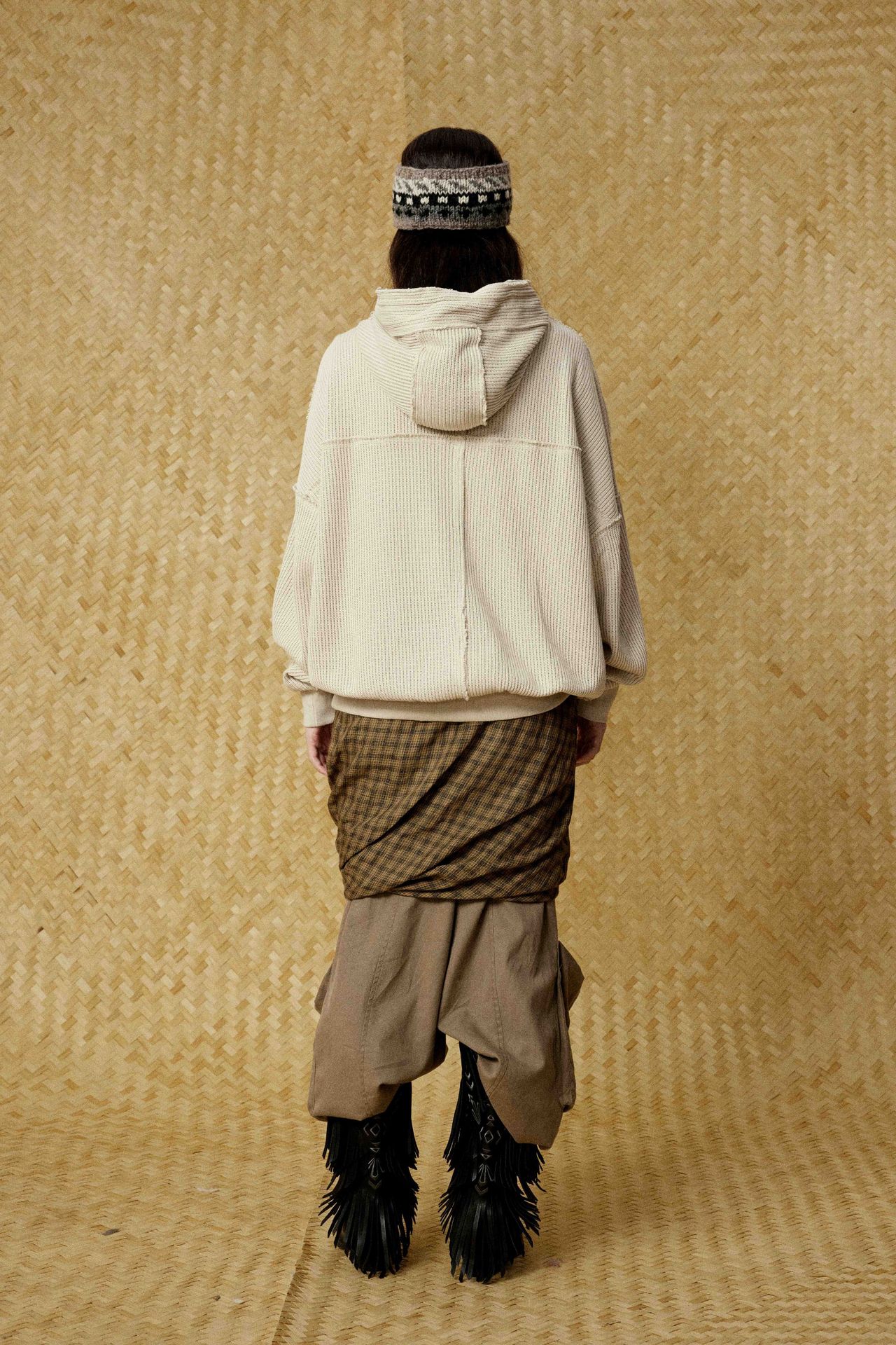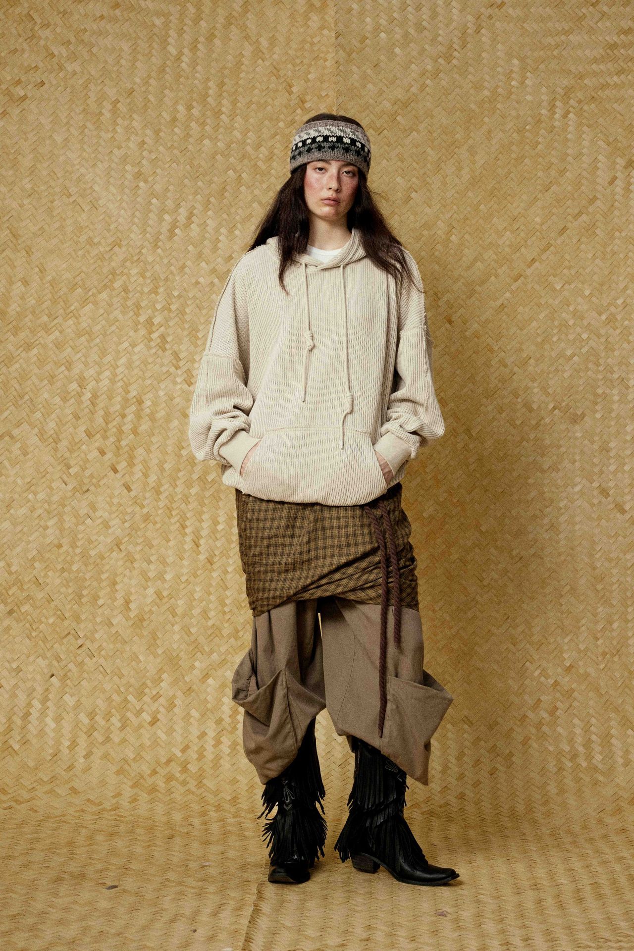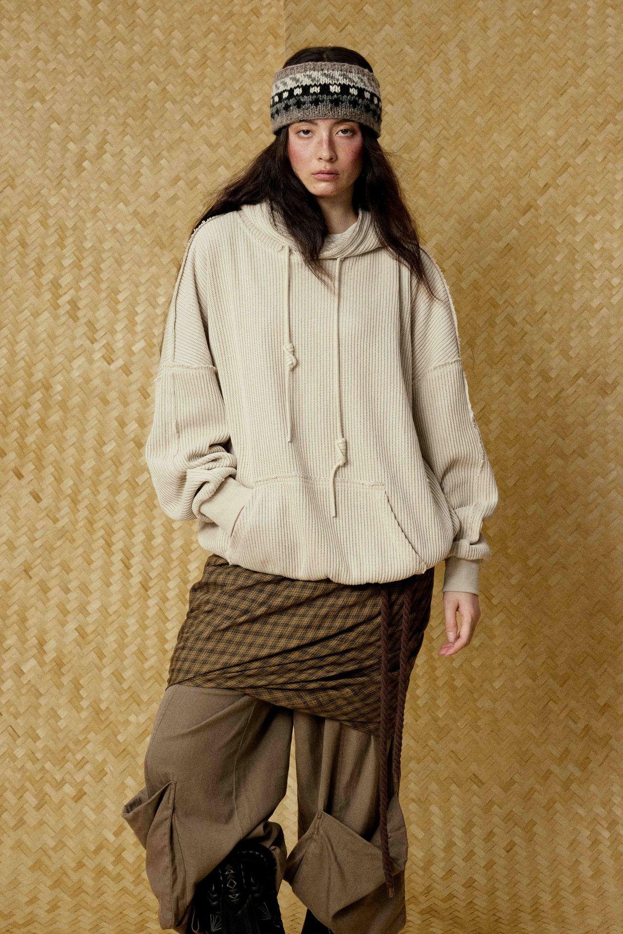 Hairy edge distressed hooded sweatshirt for men - Beige / S