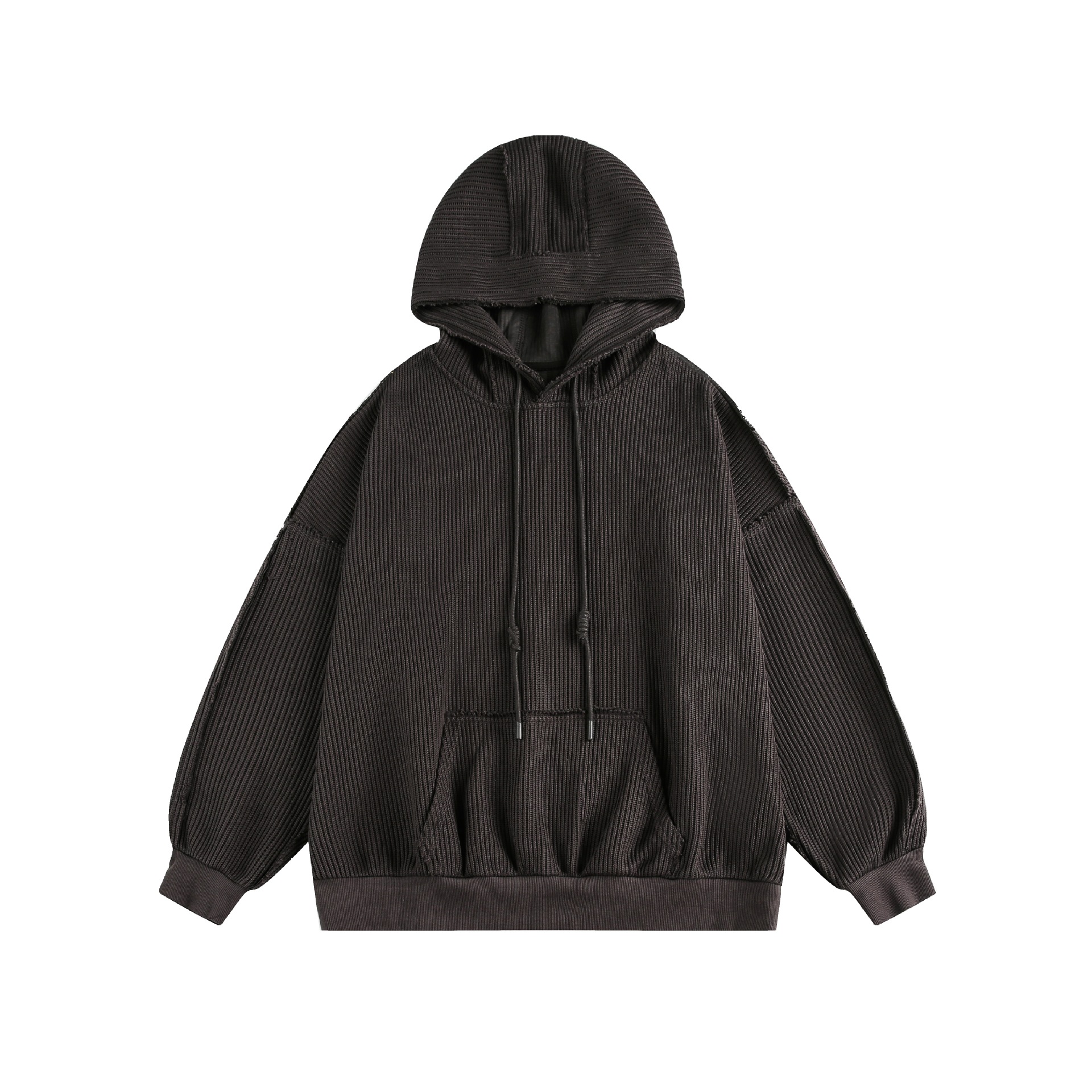 Hairy edge distressed hooded sweatshirt for men