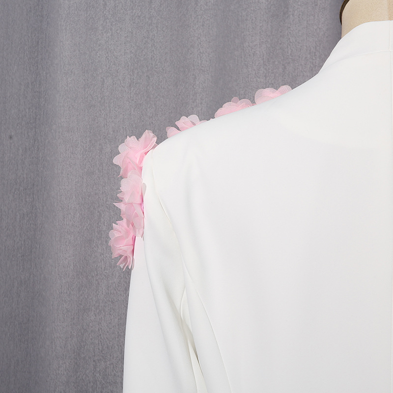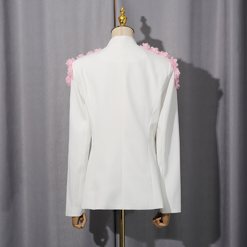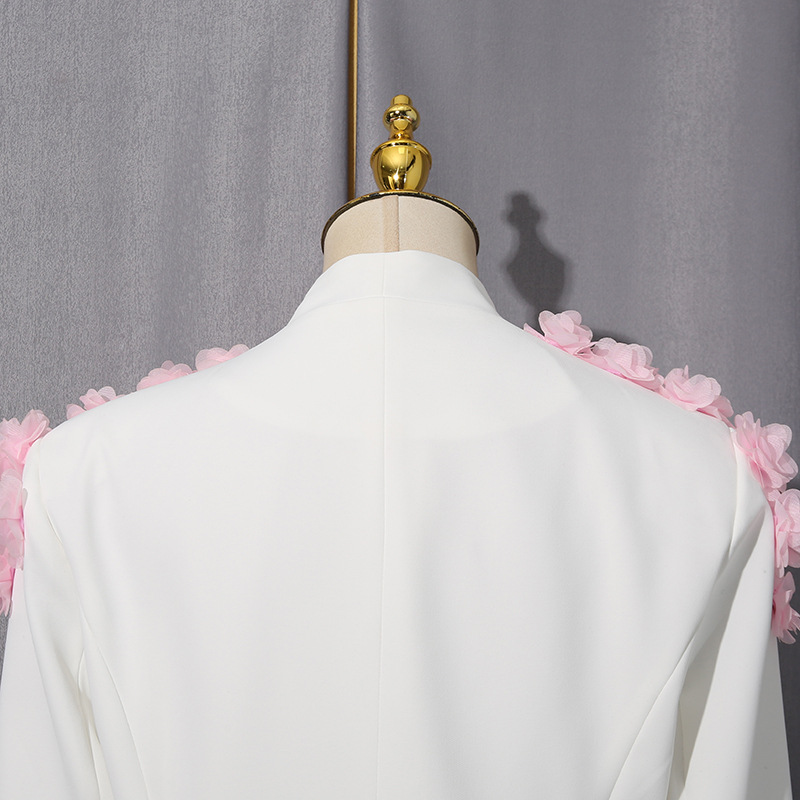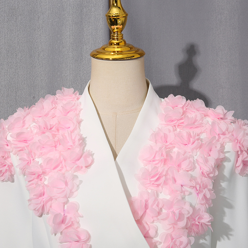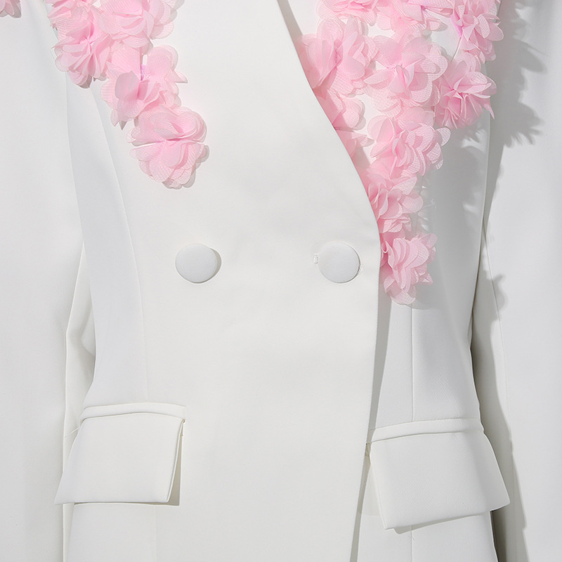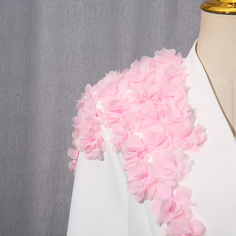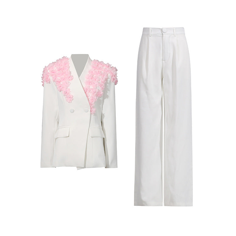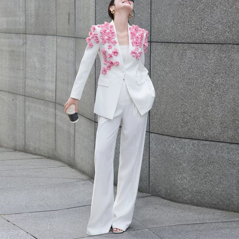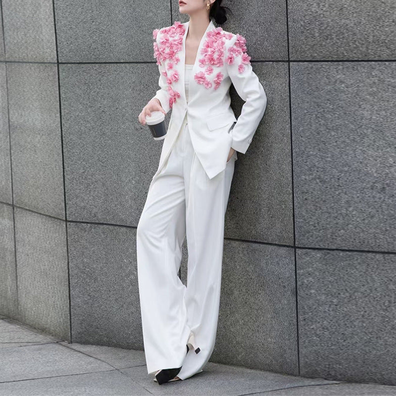 Three dimensional rose V-neck suit+high waisted straight leg pants