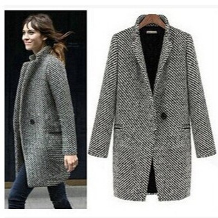 Women's high-end woolen slim fit thick long sleeved coat