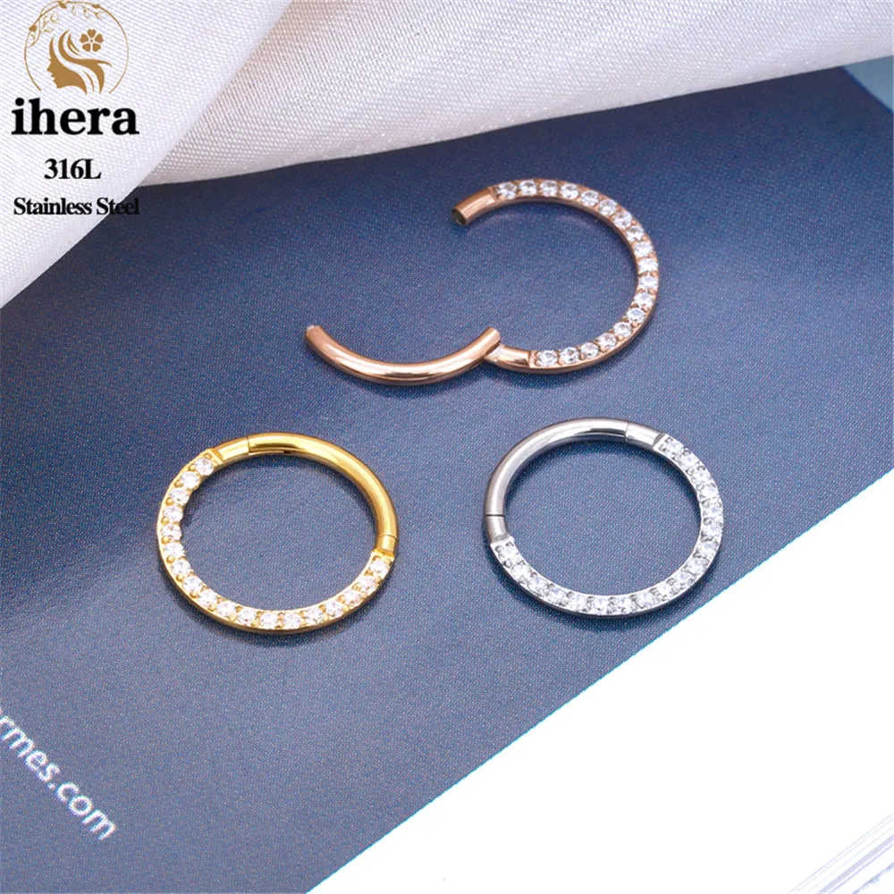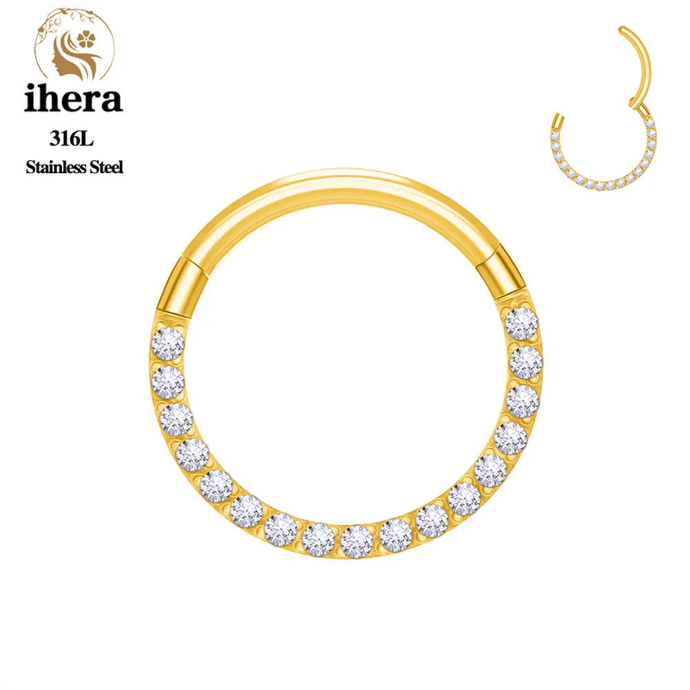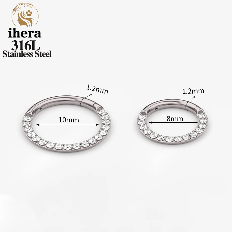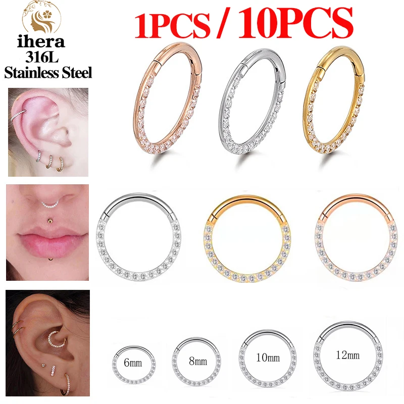 1/10PCS Stainless Steel Nose Rings Septum Clicker CZ Zircon Hinged Segment Round Earrings Hoops Ear Cartilage Piercing Jewelry - 1.2x10mm / 10PCS Gold Color