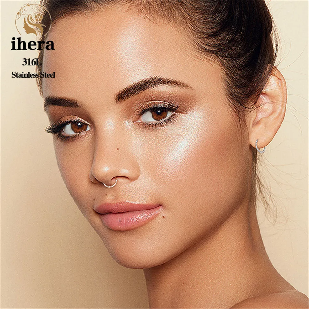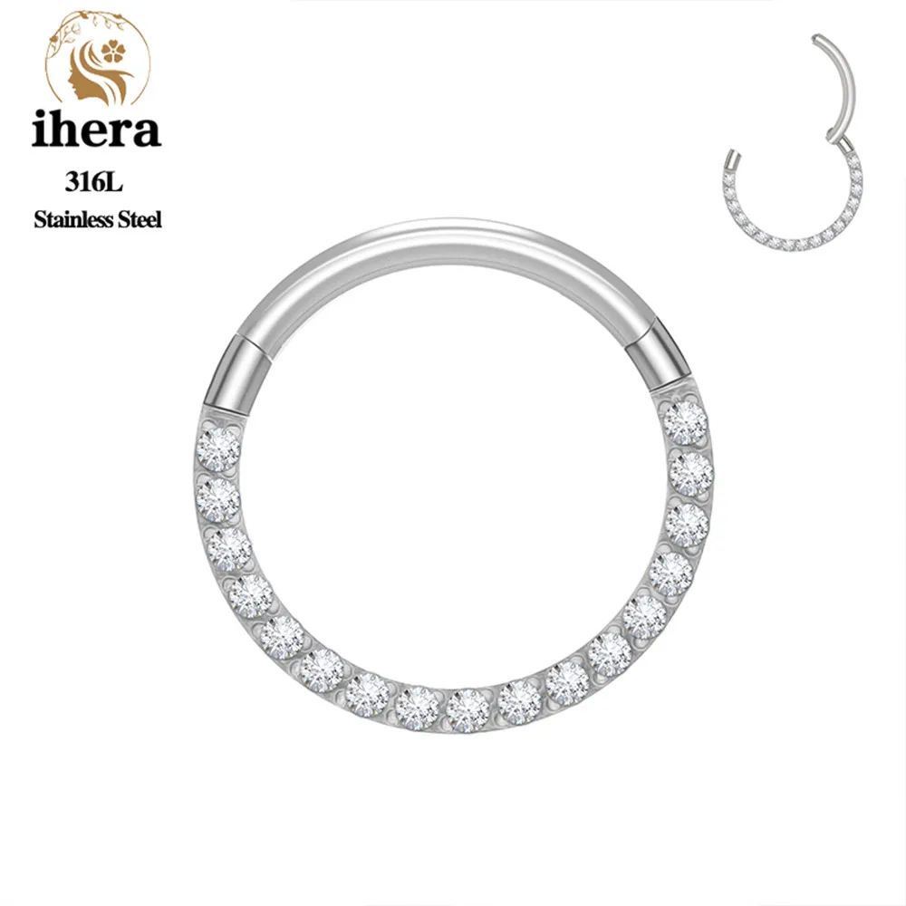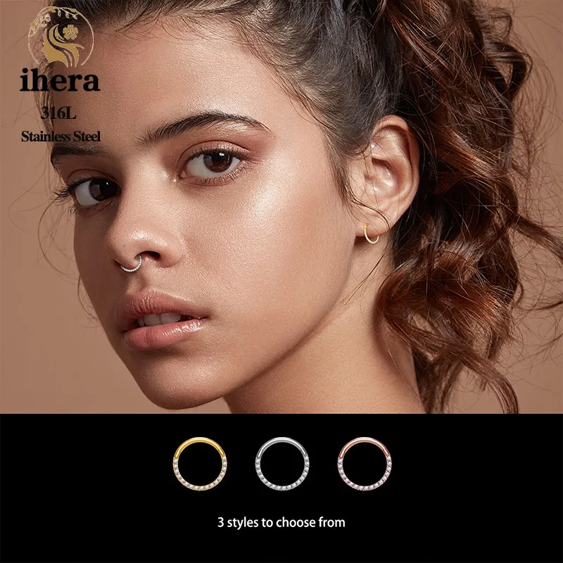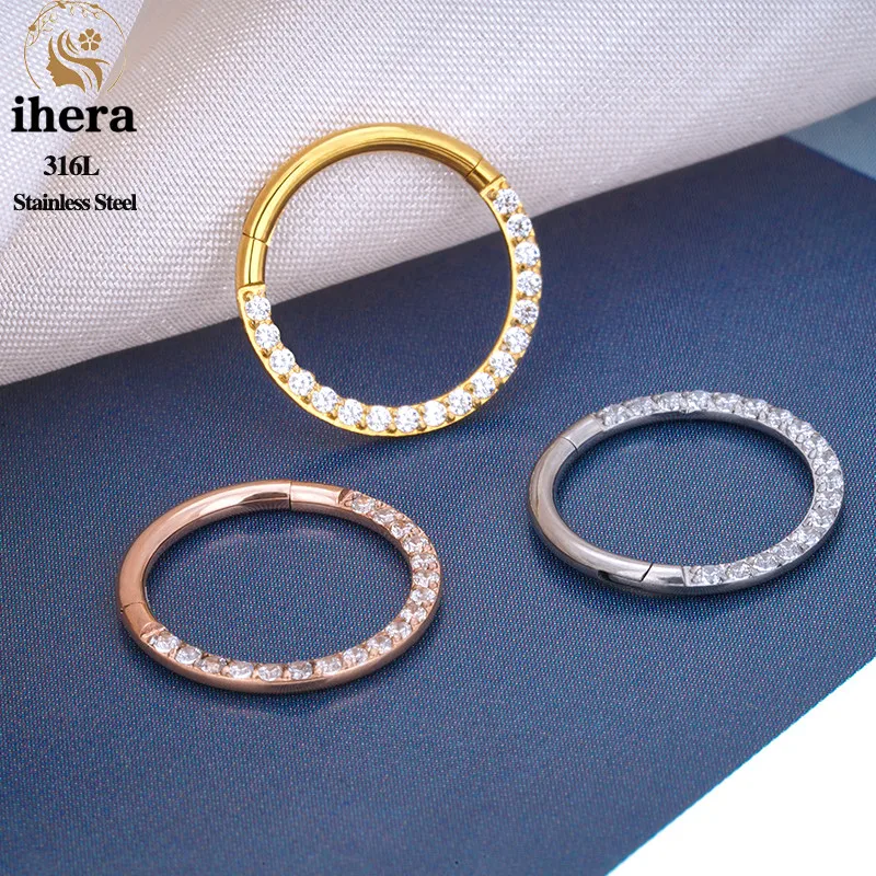 1/10PCS Stainless Steel Nose Rings Septum Clicker CZ Zircon Hinged Segment Round Earrings Hoops Ear Cartilage Piercing Jewelry - 1.2x10mm / 10PCS Gold Color