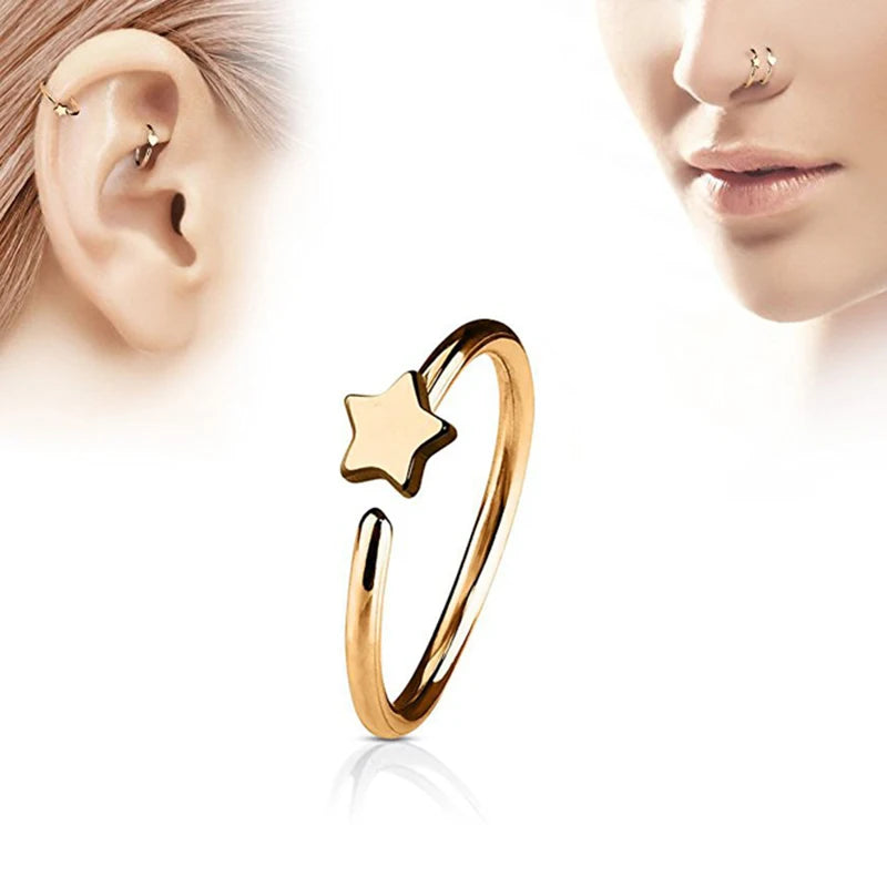 1Pcs Stainless Steel Star Nose Ring Hoops Ear Cartilage Open Hoop Ring Body Piercing Small Earrings For Women Punk - black