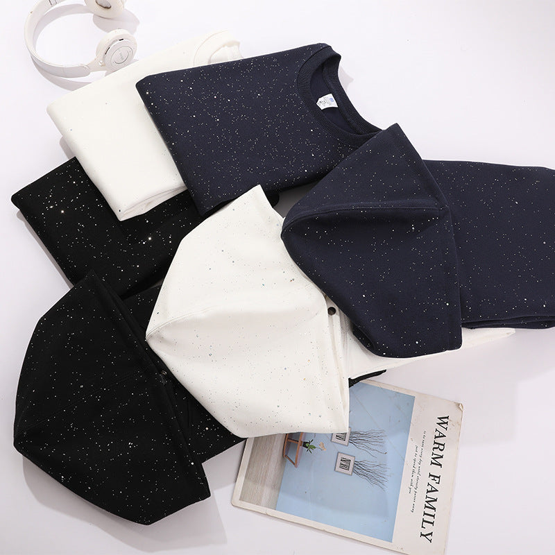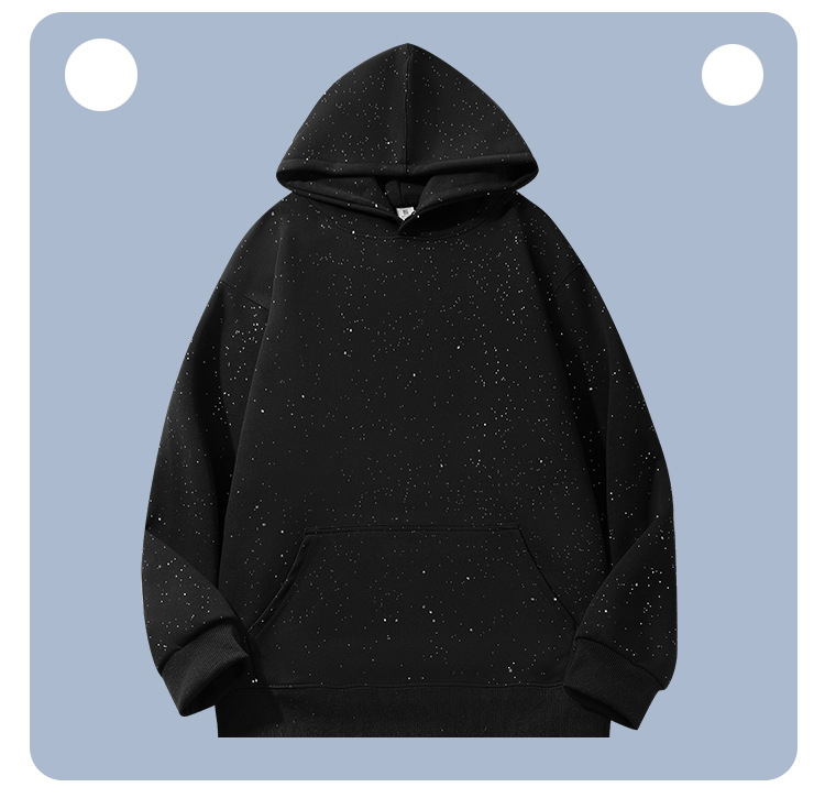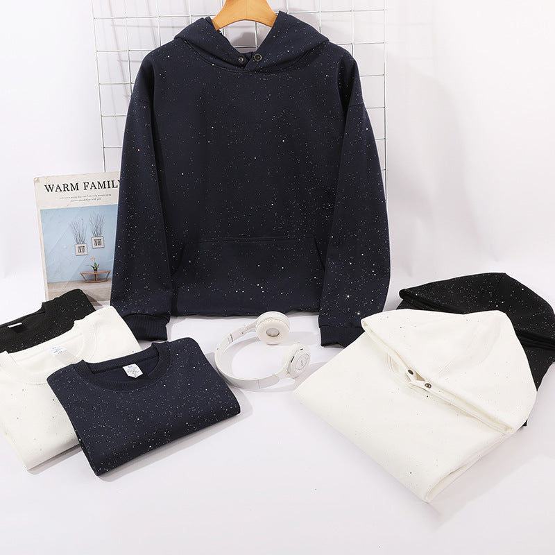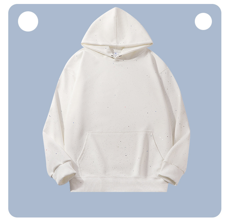 Casual Hoodie with All-Over Star Print, Unisex Streetwear Style, Loose Fit, American Fashion Top - White with hood / S